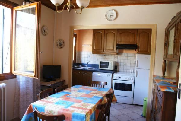 - d'un séjour avec coin cuisine toute équipée (micro-onde, cuisinière mixte et four électrique, lave-vaisselle, réfrigérateur/congélateur, appareil à raclette...)