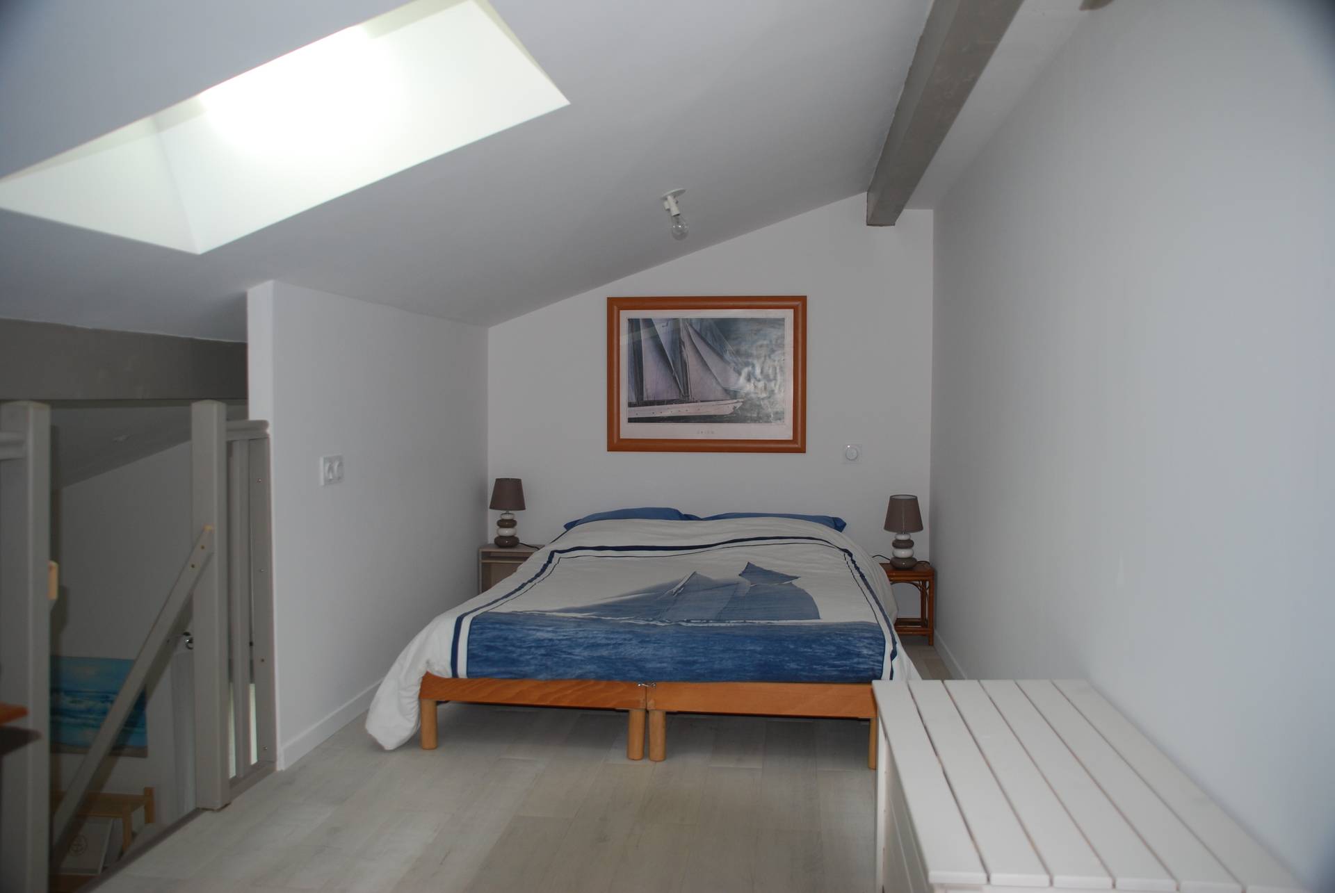 vaisselle, micro-ondes) et d'un coin nuit avec canapé convertible 2 places grand confort. La chambre en mezzanine de 12m2 dispose d'un lit double en 140cm modulable en 2 lits ainsi que d'un placard et d'un coin bureau. La salle d’eau avec douche italienne est équipée d'un lave linge. Les WC sont séparés.