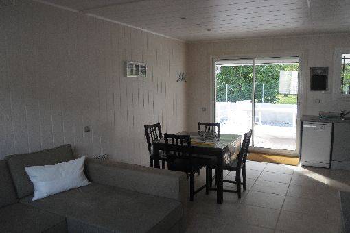 La location possède 2 chambres ,1 salle de bain, 2 wc, 1 lave linge,1 llave vaisselle, 1 four + micro onde,1 convertible,1