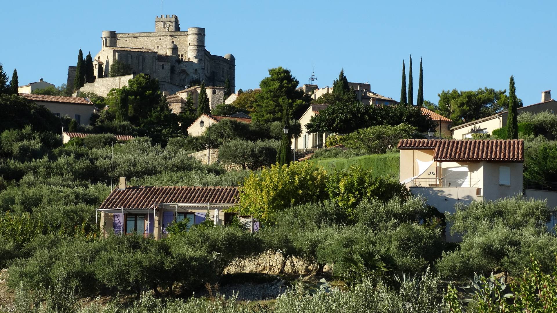 A proximité du village du Barroux, pour un séjour calme et serein, pour 2 à 4 personnes, appartement neuf attenant à la maison des propriétaires, sur exploitation agricole (production d'abricots, huile d'olive et vin) mais totalement indépendant, 1 place de parking réservée. 1 séjour cuisine avec réfrigérateur-congélateur, cuisinière et four électrique, four micro-onde, cafetière, télé grand écran - connexion WiFi - 1 salle de bain avec douche à l'italienne, lavabo et lave-linge - toilettes indépendantes - 1 chambre avec 2 grands lits, possibilité 1 lit bébé, rangement - … 2 terrasses, une avec vue sur le Mont Ventoux, l'autre avec vue panoramique exceptionnelle sur les Monts de Vaucluse, les Alpilles, la plaine du Comtat Venaissin, le Palais des Papes en Avignon. Baignade à proximité (lacs et rivière), de nombreux lieux touristiques à visiter dans la région (Avignon, Vaison la Romaine, la Fontaine de Vaucluse, Gordes ...). L'exploitation agricole fait partie du réseau "ACCUEIL VÉLO VENTOUX" Lire moins Lire la suite