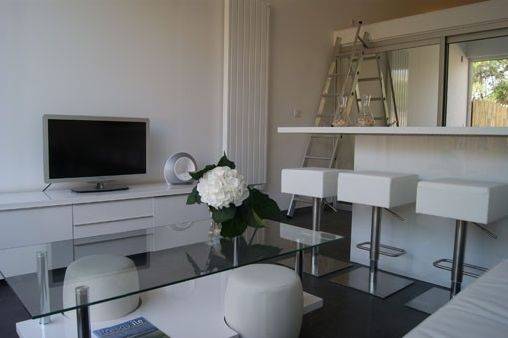 Cap ferret. superbe appartement de grand confort, 30 m2, situé à 100 m de la plage principale du cap ferret : la plage de l'océan; plain pieds, 2 pièces, un séjour avec grande baie vitrée ouvrante sur terrasse privative et close de 25m2, une chambre avec lit de 140x190, une loggia avec 2 lits de 90x190. convertible pour 2 personnes dans le séjour. cuisine-bar avec lave-vaisselle, four-micro-ondes, plaques vitro et hotte, frigo. salle de bains et wc séparés. tv et accès internet en wifi, station iphone/ipod. idéal pour 2 à 4 personnes et possibilité jusqu'à 6 personnes avec le convertible.