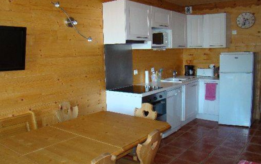 Cet appartement est situé sur le front de neige au pied des pistes. Il comprend une entrée, une cuisine entièrement équipée / salon TV et DVD, une chambre avec un lit double, une chambre avec deux lits double superposés et une troisième chambre avec