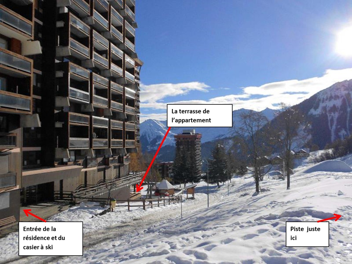 - L'appartement est en rez de chaussée: Possibilité de chausser les skis devant la terrasse de l'appartement et de rejoindre le télésiège débrayable pour accéder au domaine skiable. Pas d’attente aux ascenseurs, possibilité de venir faire une pause pique-nique en passant par le portillon de la terrasse sans avoir à ranger tout le matériel au casier à skis.