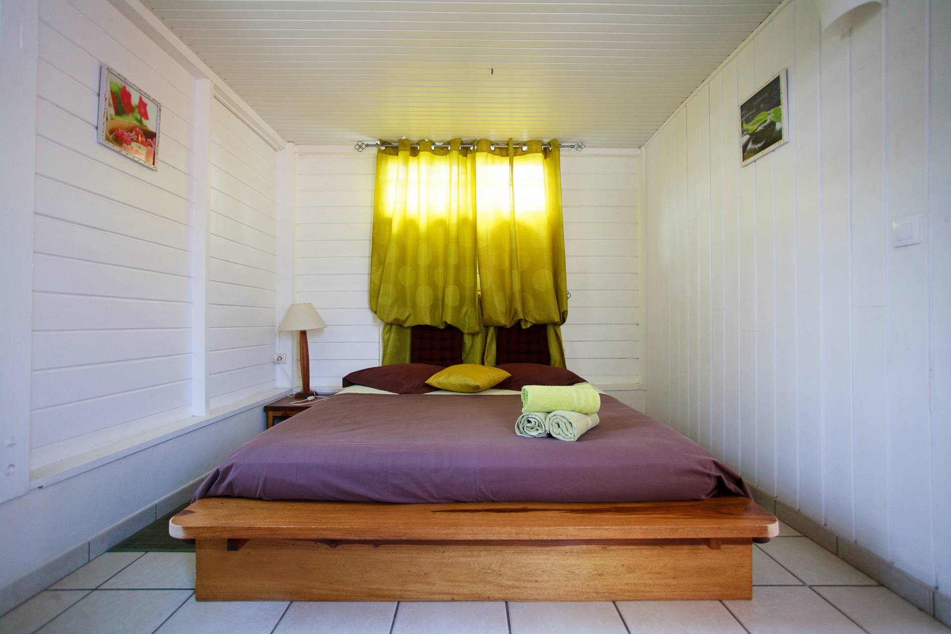 Chambre : climatisée, 1 grand lit de 160x200cm, 1 armoire, 1 console, 1 table de chevet, 1 lampe de chevet, linge de maison fourni ( draps, serviettes de toilette, draps de bain)