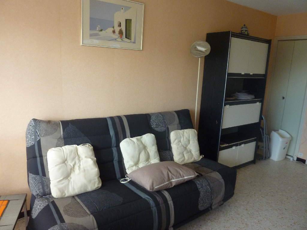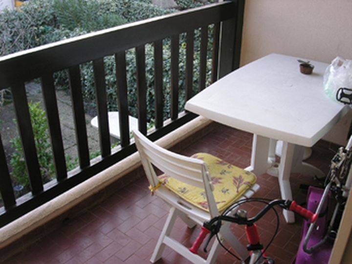 L’appartement est situé au premier et dernier étage d’une petite résidence très calme. Parking fermé. On est à 200 mètres de la plage. Le logement de type P2 est composé d’un grand séjour avec coin cuisine, une loggia donnant sur des jardins. Un W.C. et une salle de bain avec baignoire. Une chambre avec penderie.