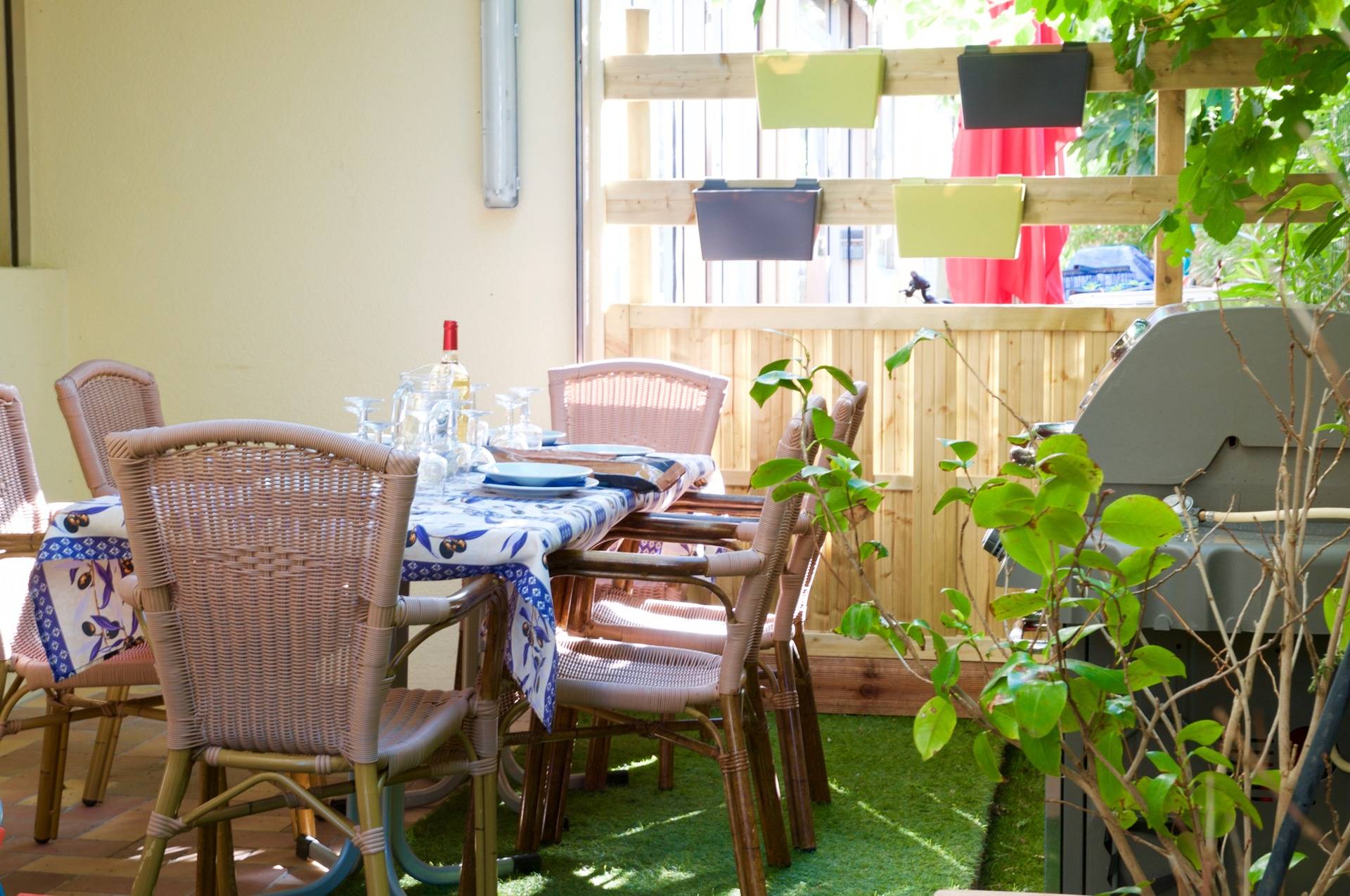 Au rez-de-chaussée de la résidence un appartement pour 6 personnes avec terrasse privative, barbecue, cuisine équipée et entièrement climatisé.