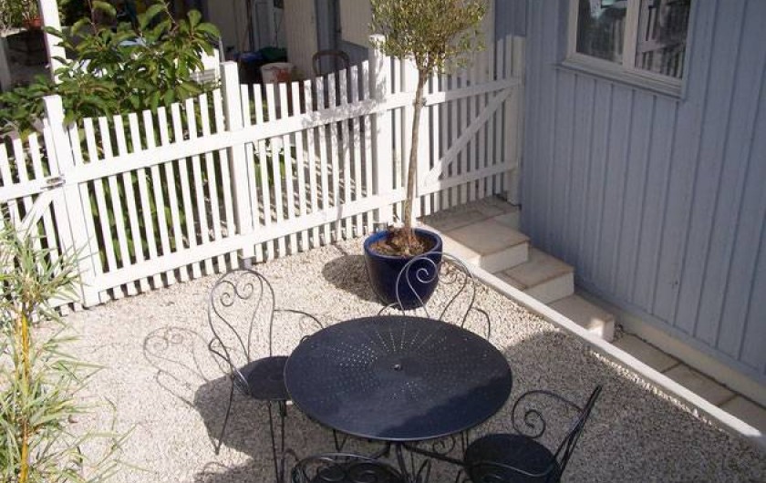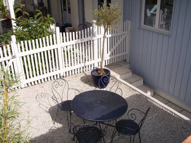 d'un agréable jardin ensoleillé, équipé d'un salon de jardin et d'un barbecue.