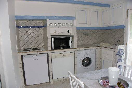 cuisine entièrement équipée (machine à laver, lave vaisselle, four micro onde, plaques électriques, frigo, vaisselles)