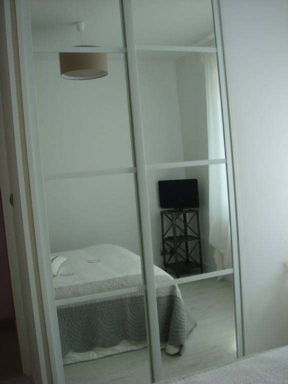lit 140 pour 2 personnes, TV, placard penderie porte miroir.