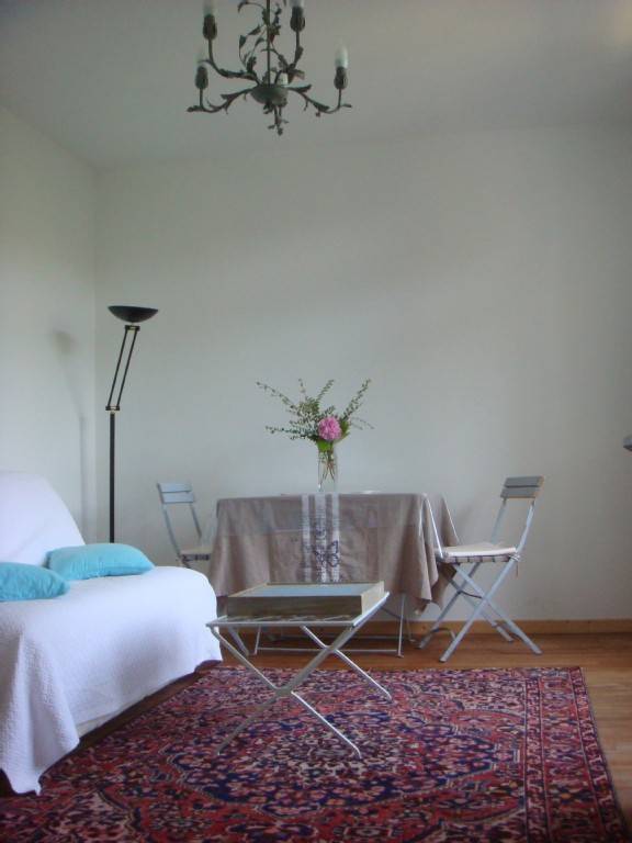 Salon ou chambre ouvert sur balcon, très belle vue sur les arbres centenaires du bois . cette pièce est équipée d'un CLI CLAC soit un couchage 2 personnes.