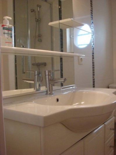 1 salle d'eau ,douche,WC, radiateur sèche serviette.