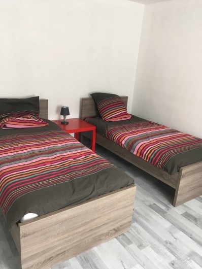 Couchage pour maximum 6 personnes. 2 chambres en enfilade dont une avec un lit deux places . La seconde a deux lits une place.