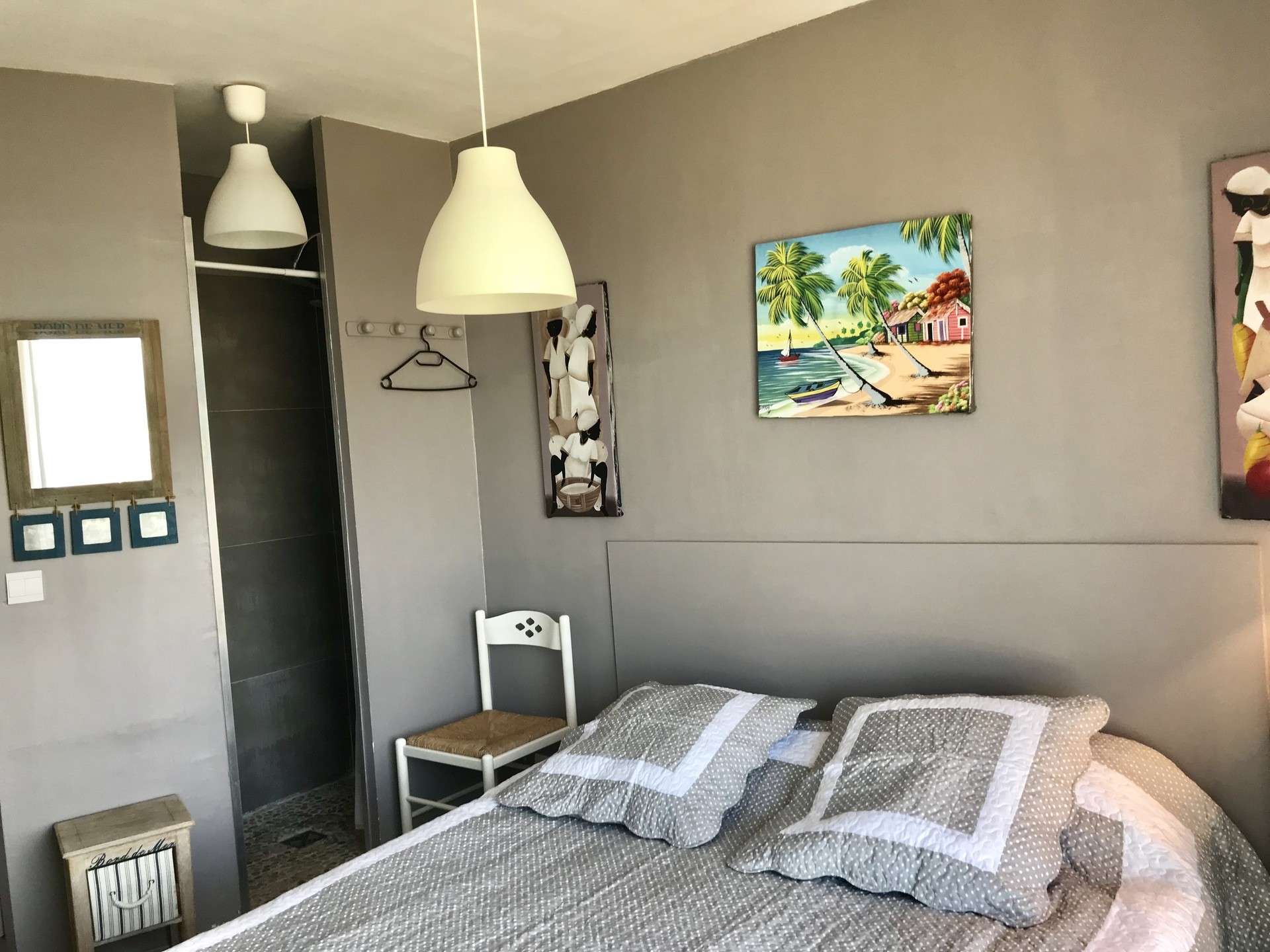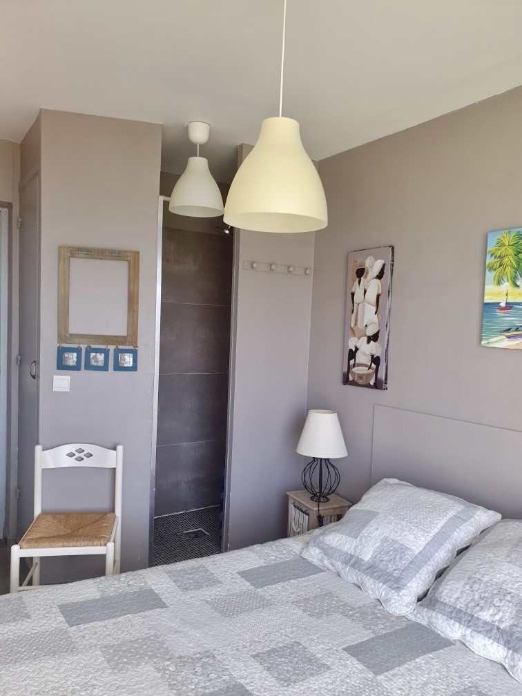 1 chambre face mer : lit 2 personnes 160 + douche à l'Italienne ;