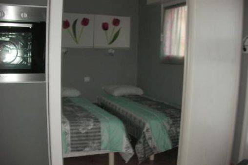- Un clic-clac 2 couchages, meuble de rangements, table vitrée et 4 chaises, table basse vitrée, TV, lecteur de DVD, tableaux de décoration, lampe halogène.