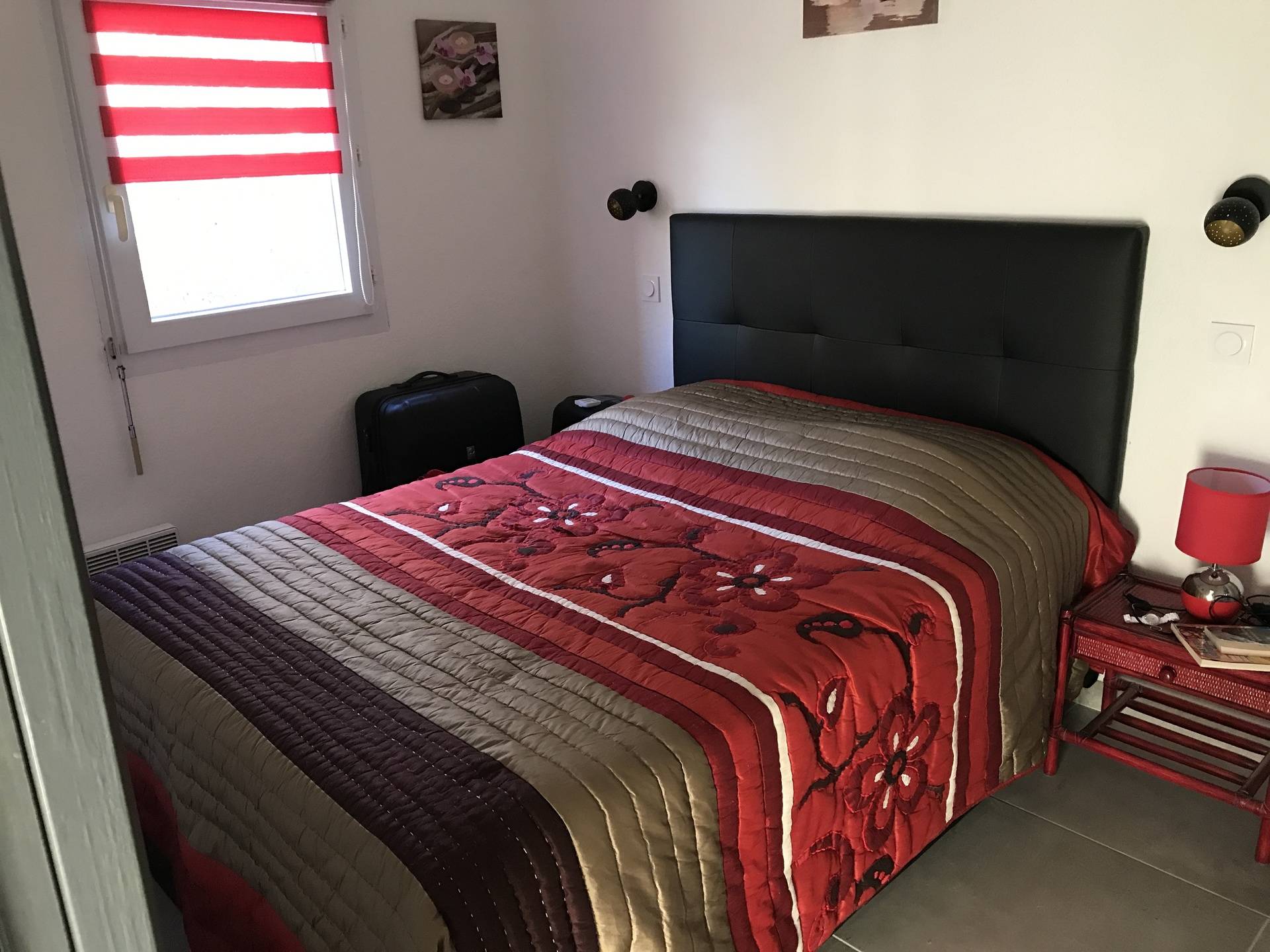 Chambre avec 1 grd lit et une penderie murale 3 portes avec casiers et
