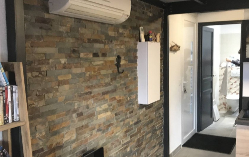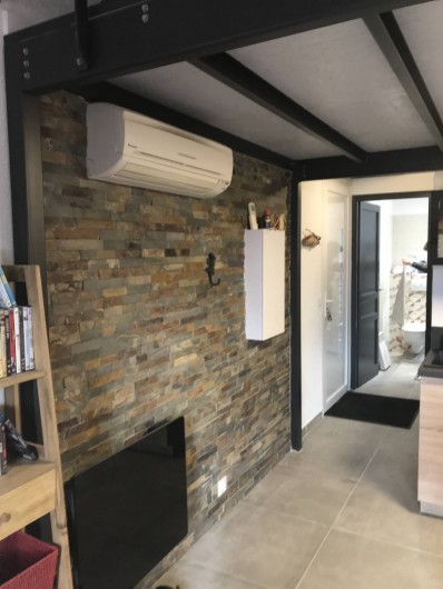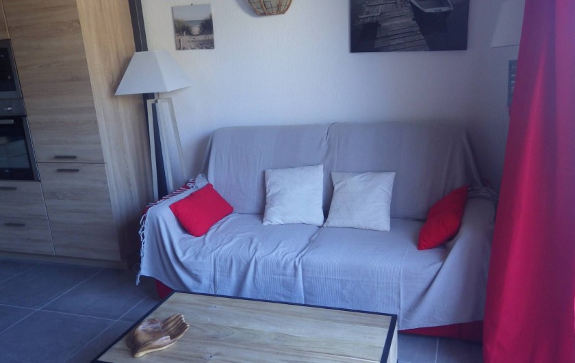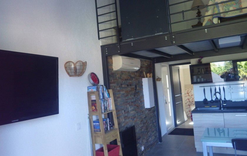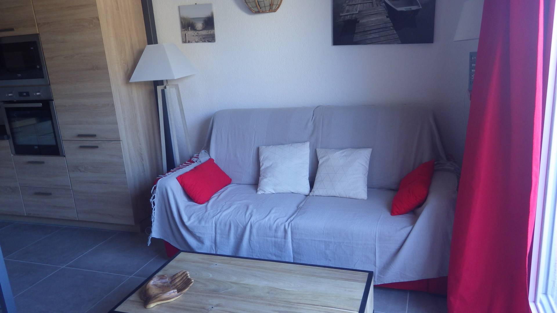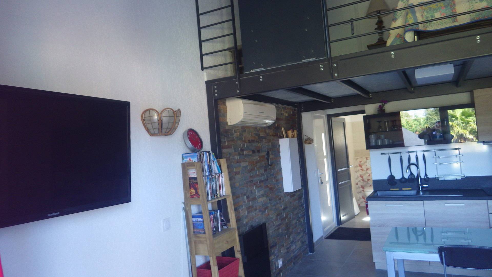 Séjour avec un canapé RAPIDO pour 2 personnes,une gde télé,un lecteurDVD,des DVD.Une climatisation.