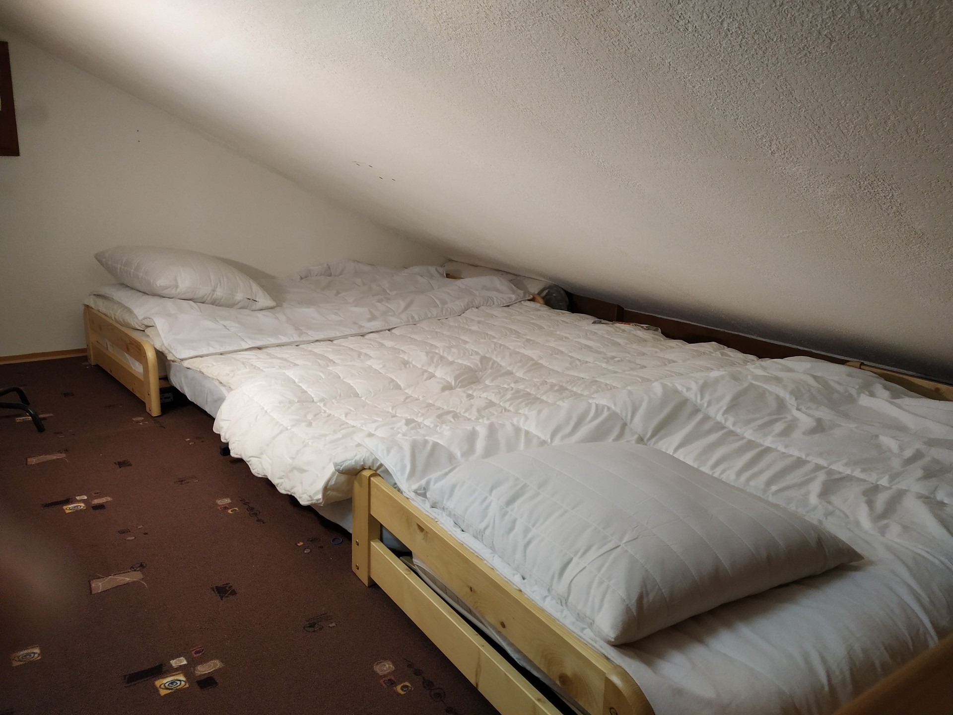 Dans salon : 1 cliclac qui fait lit 140cms. Sur les 8 emplacements, couette oreiller ,aléze.