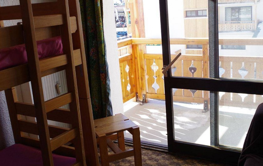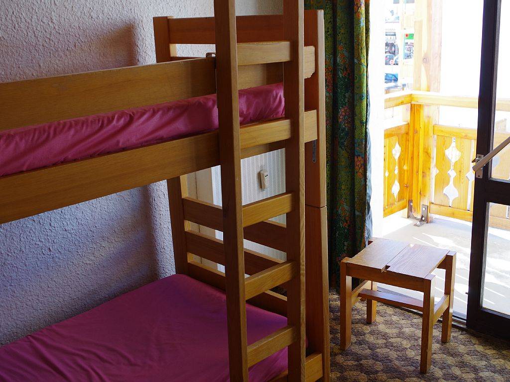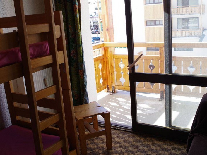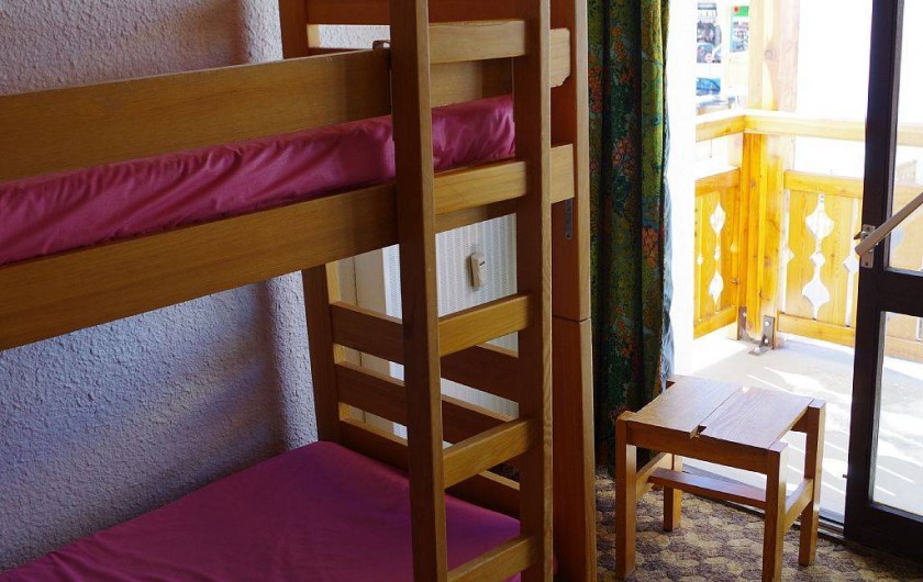 une chambre avec 2 lit simple superposés +1 lit tiroir = 3 couchages ,une armoire, donnant sur un balcon sud ouest, un tabouret