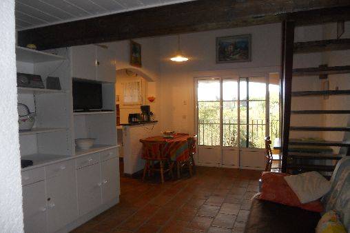 Chambre avec lit double. Kitchenette équipée ( plaques électriques), four, micro-onde, 2 frigos avec compartiment congélateur et petit électroménagers). Un salon séjour avec clic-clac + TV. Salle de bain avec lave-linge + WC séparé.