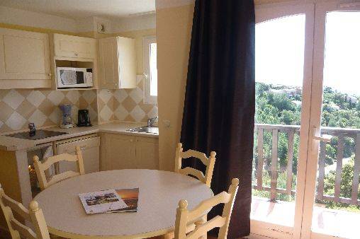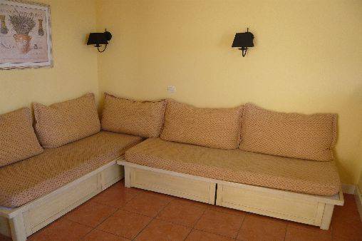 1 séjour avec 2 banquettes lits, coin cuisine entièrement équipée (micro-onde, lave-vaisselle,TV etc…)
