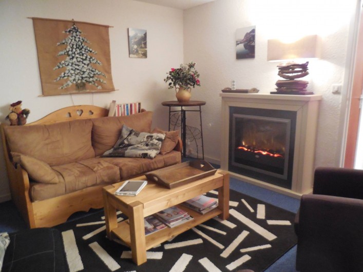 - 1 salon avec canapé lit de 140 cm. et cheminée électrique