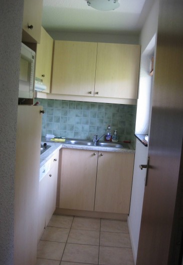 -1 cuisine aménagé avec lave vaisselle, four micro ondes, plaques vitro.