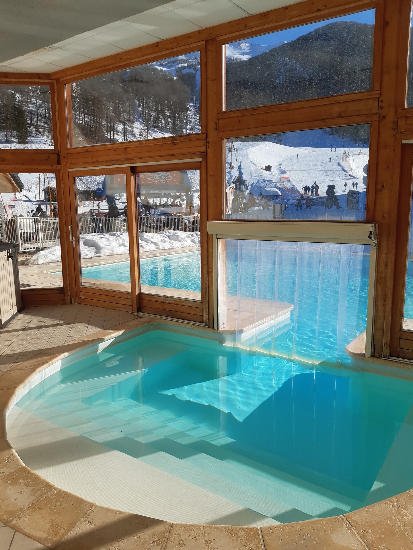 Depuis le bâtiment, vous aurez accès direct à l’espace aquatique composé d’une piscine intérieure chauffée, (accès libre de 14 h à 19