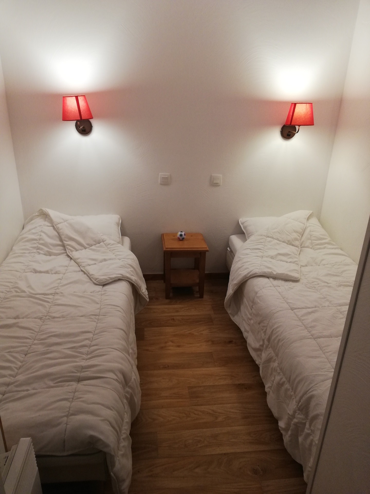 - une chambre avec 2 lits 1 place avec rangement – Oreillers et Couette