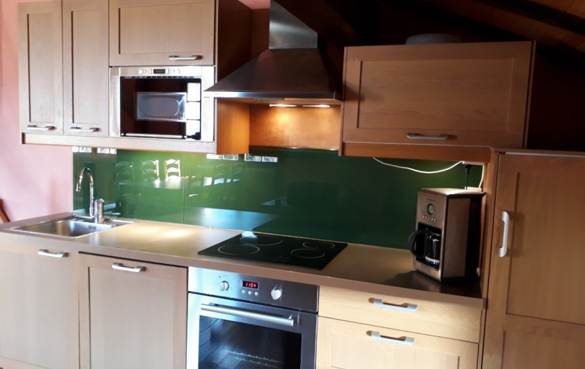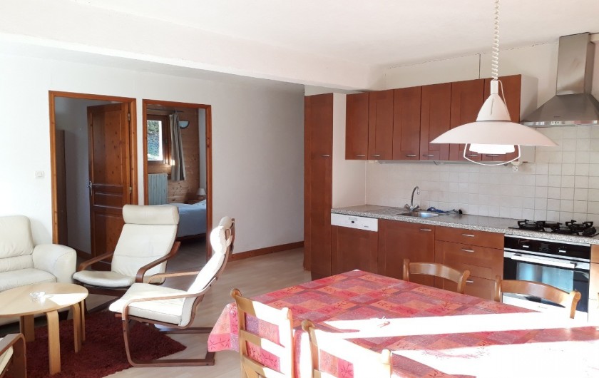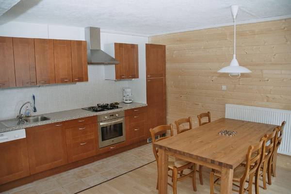 Entrez par la cuisine ouverte, intégrée, moderne et toute équipée avec micro-ondes, four électrique, lave-vaisselle, frigo, congélateur, lave linge, ... Puis poursuivez dans le séjour lumineux par sa porte fenêtre. Le pièce à vivre comprend également un espace repas équipé d'une table campagnarde et un espace salon avec canapé, TV grand écran plat, lecteur DVD, WIFI et poêle colonial (bois fourni).