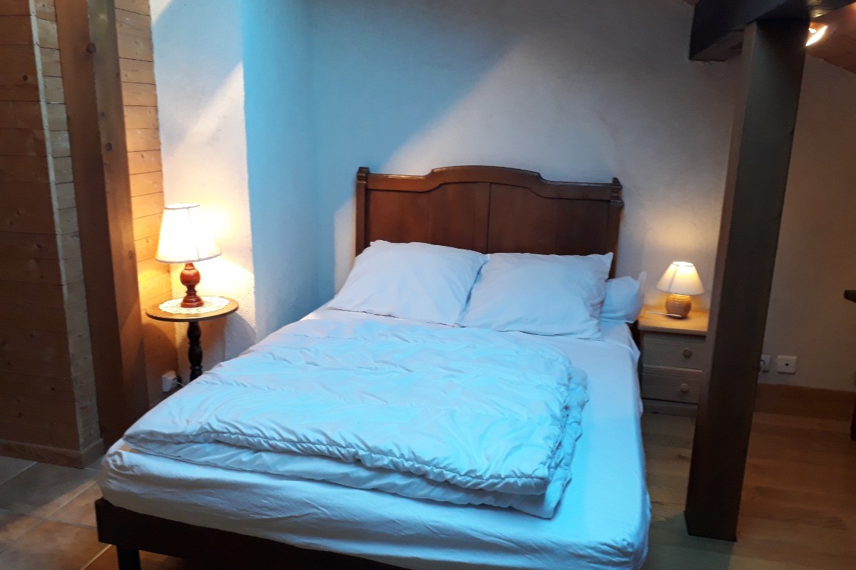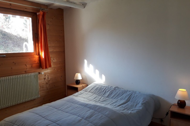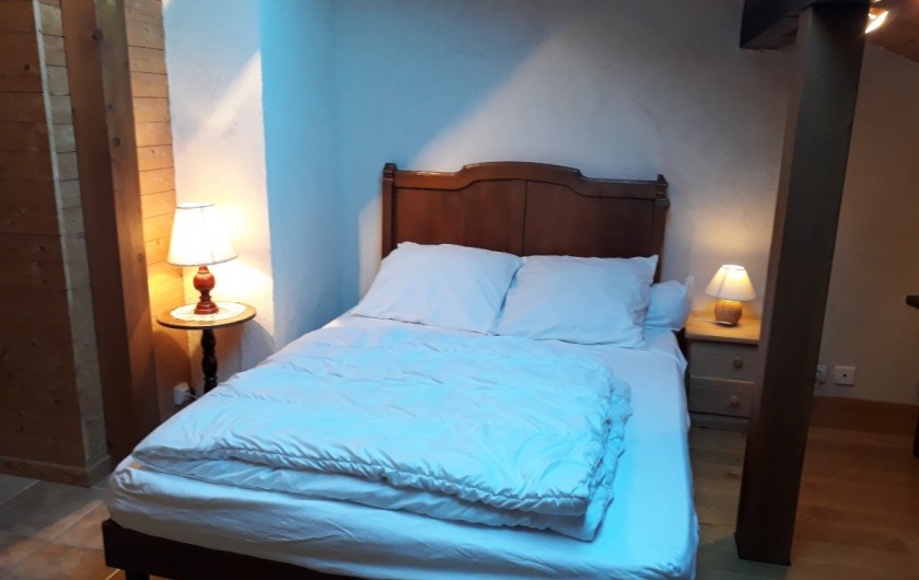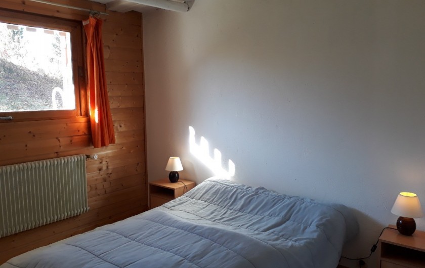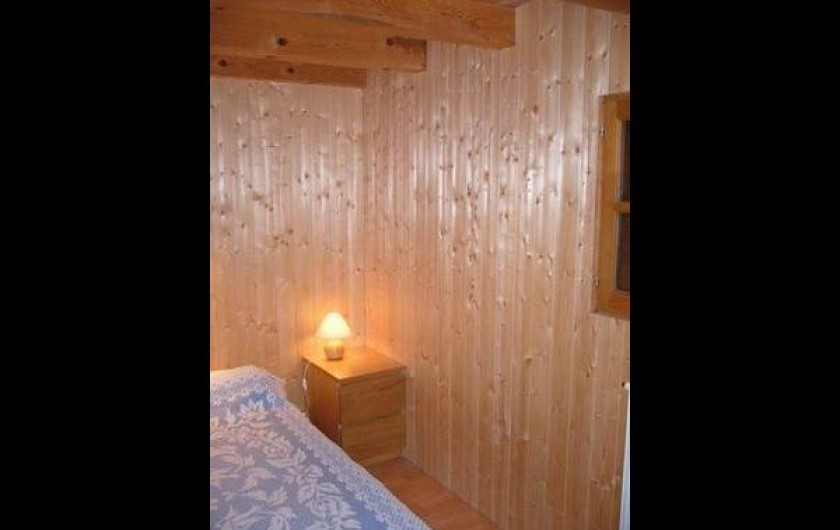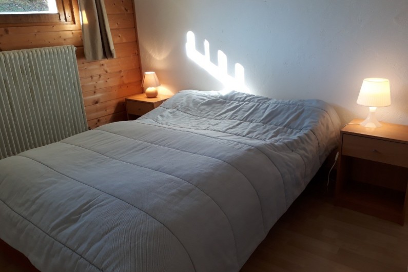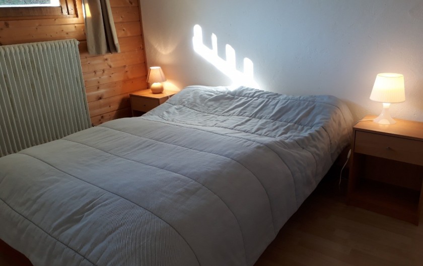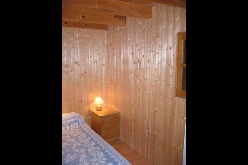 A côté du séjour, retrouvez la première chambre indépendante avec lit 140, la pièce est très chaleureuse grâce aux murs en bois, tout comme la seconde chambre qui se trouve à l'étage, elle dispose d'un lit 140.