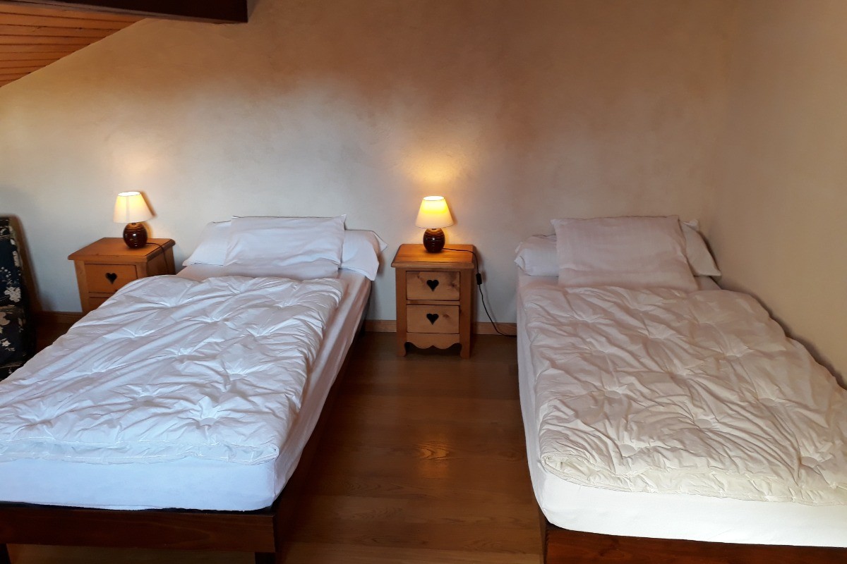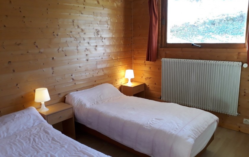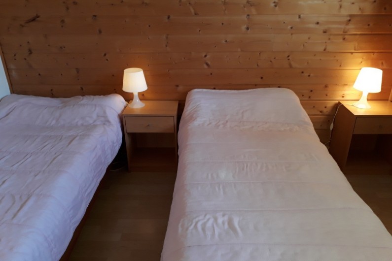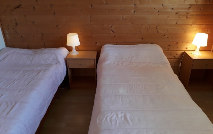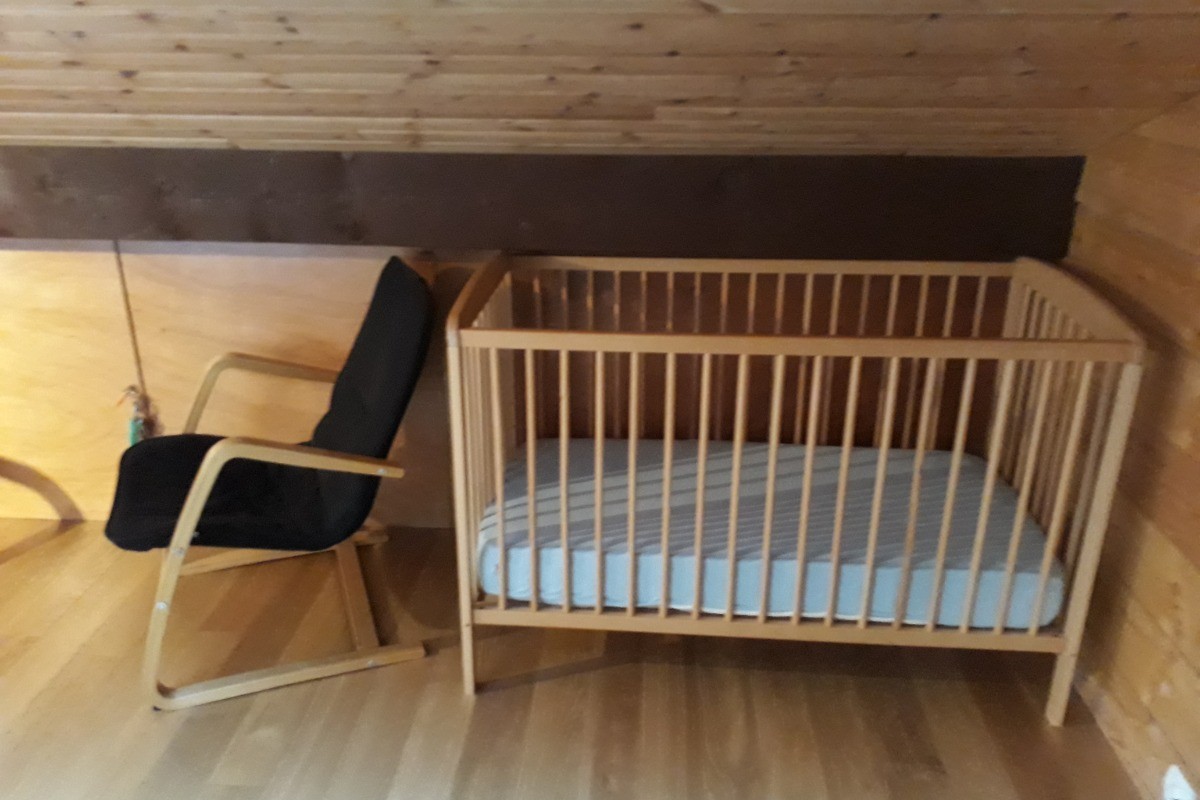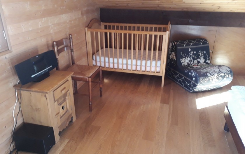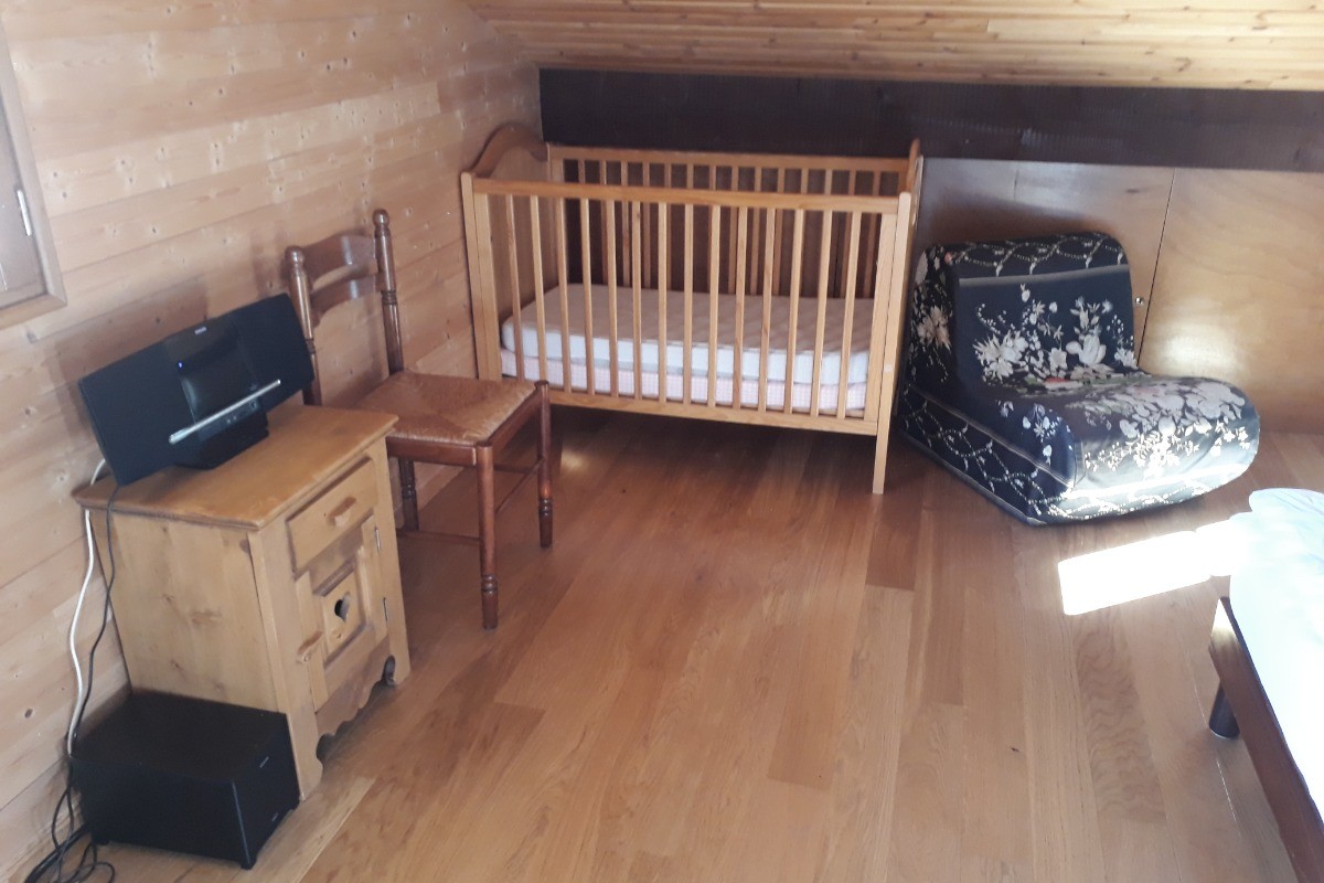 A côté du séjour, retrouvez la première chambre indépendante avec lit 140, la pièce est très chaleureuse grâce aux murs en bois, tout comme la seconde chambre qui se trouve à l'étage, elle dispose d'un lit 140.