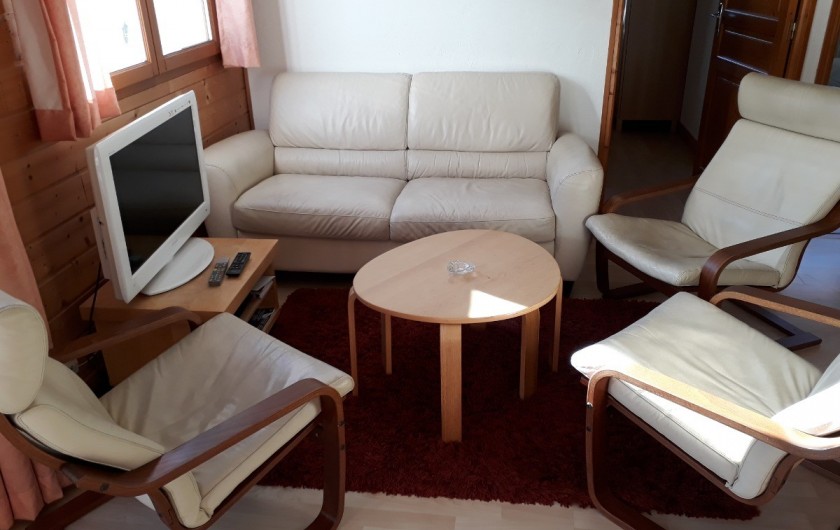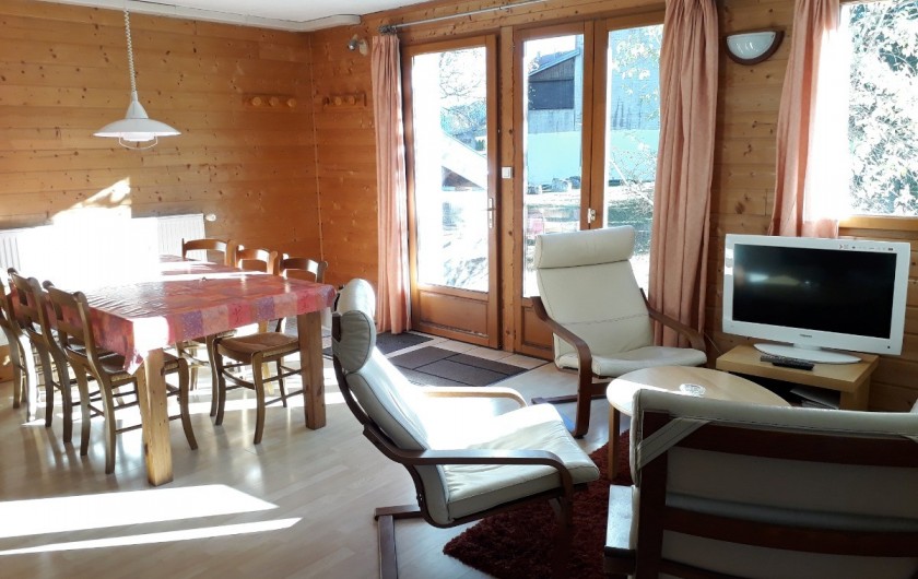 Découvrez le grand séjour lumineux par ses portes fenêtres et bais vitrées. Le pièce à vivre comprend la cuisine intégrée toute équipée avec micro-ondes, four électrique, lave-vaisselle, frigo, congélateur. Dans le séjour se trouve un espace repas équipé d'une table campagnarde et un espace salon avec canapé, fauteuils, TV grand écran plat, lecteur DVD