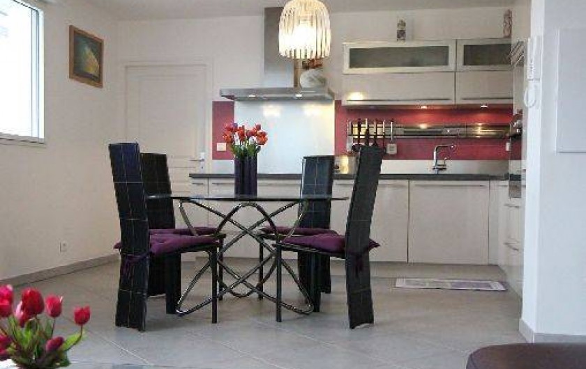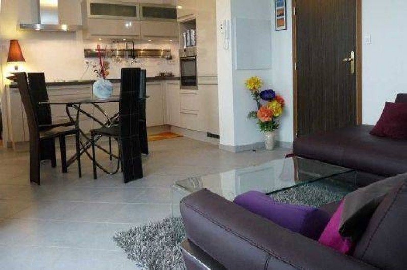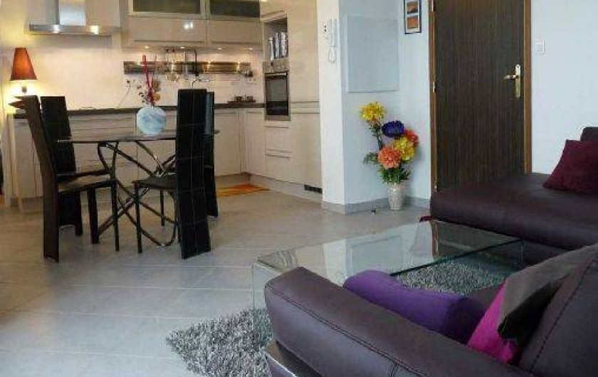 Résidence récente de standing, Décoration très soignée. idéal 2 à 4 personnes, 2 CHAMBRES : un lit 160 x 200, 2 lits 90 x 200, un canapé d'angle . Cuisine intégrée contemporaine toute équipée. confort : baignoire et douche, wc séparé. Chauffage électrique.Vue panoramique, grande terrasse végétalisée au dernier étage, salon de jardin. A proximité du port de plaisance et de tous commerces, rues piétonnes, restaurants du port de pêche , marchés. Vous pouvez oublier votre voiture au Garage