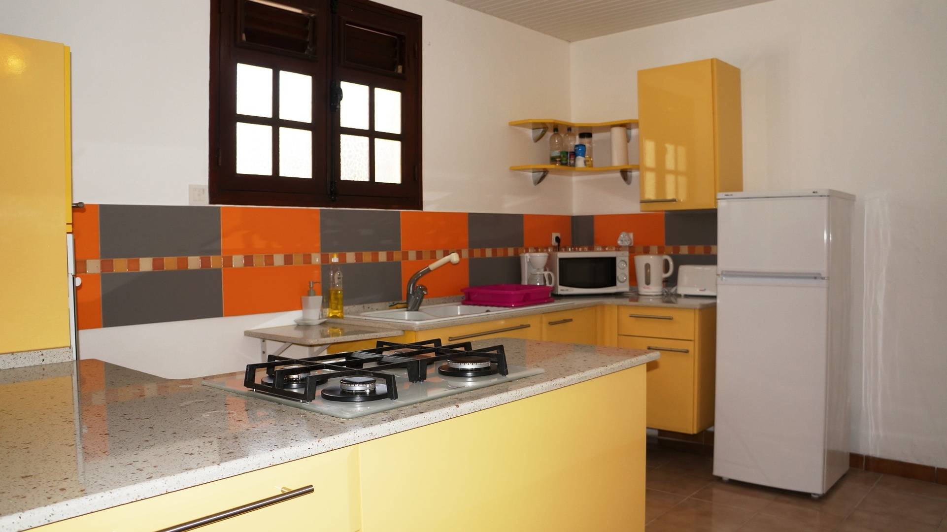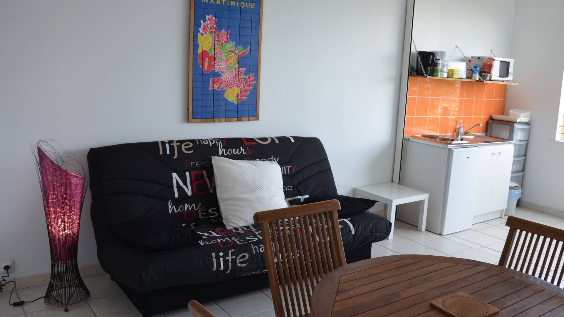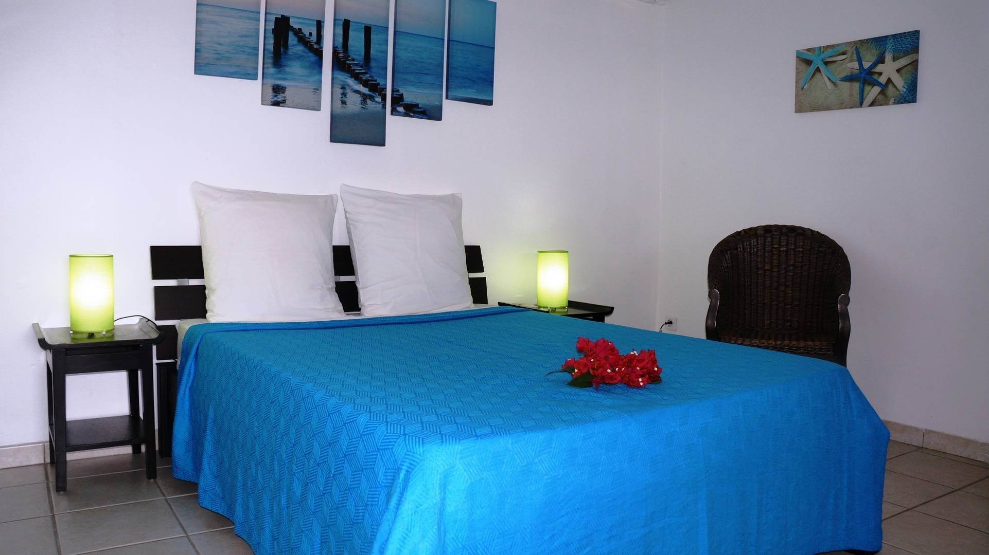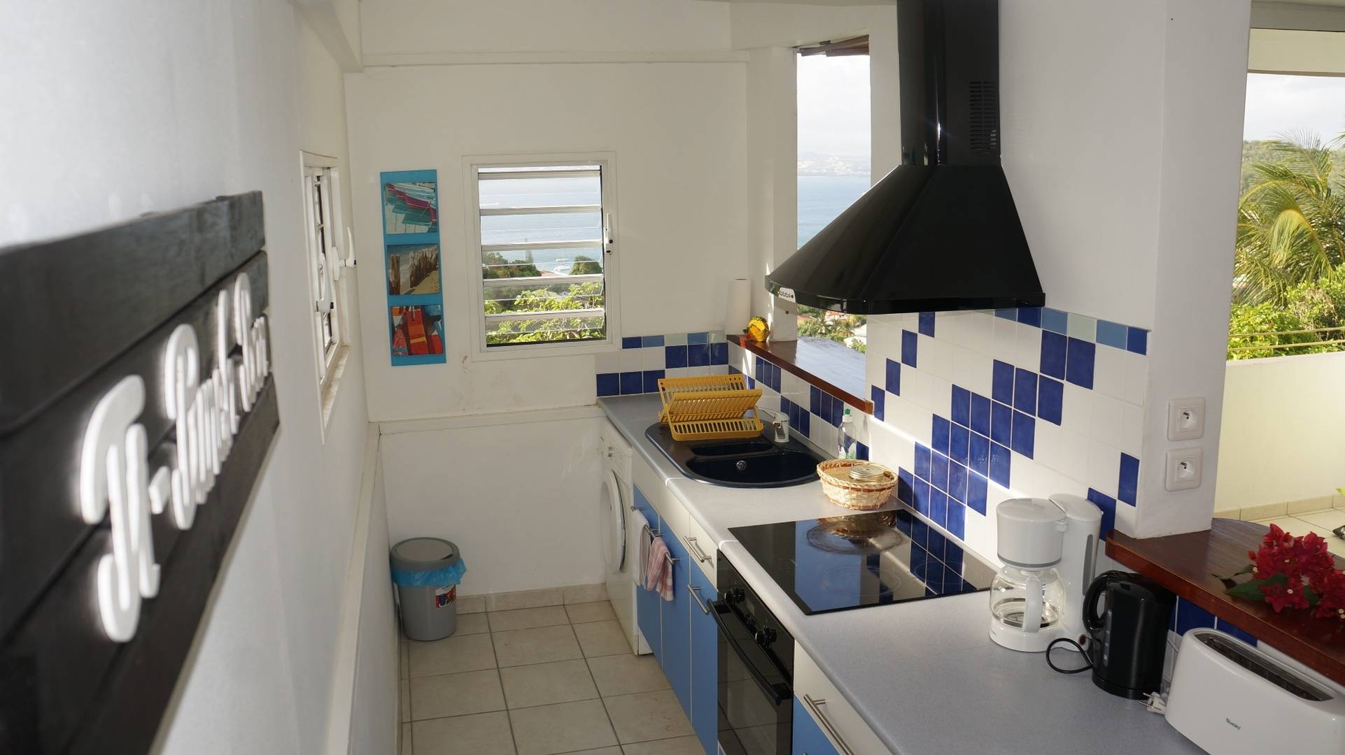 Climatisation : Oui. Tous les appartements sont orientés au nord-ouest (idéal en Martinique), avec des jalousies qui assurent une agréable ventilation par les alizés mais selon votre préférence vous pouvez les fermer et utiliser la climatisation. Les appartements « Pierre », « Raphaëlle » et « Anna » ont un large volet roulant électrique qui transforme votre séjour en un grand espace ouvert sur la terrasse.