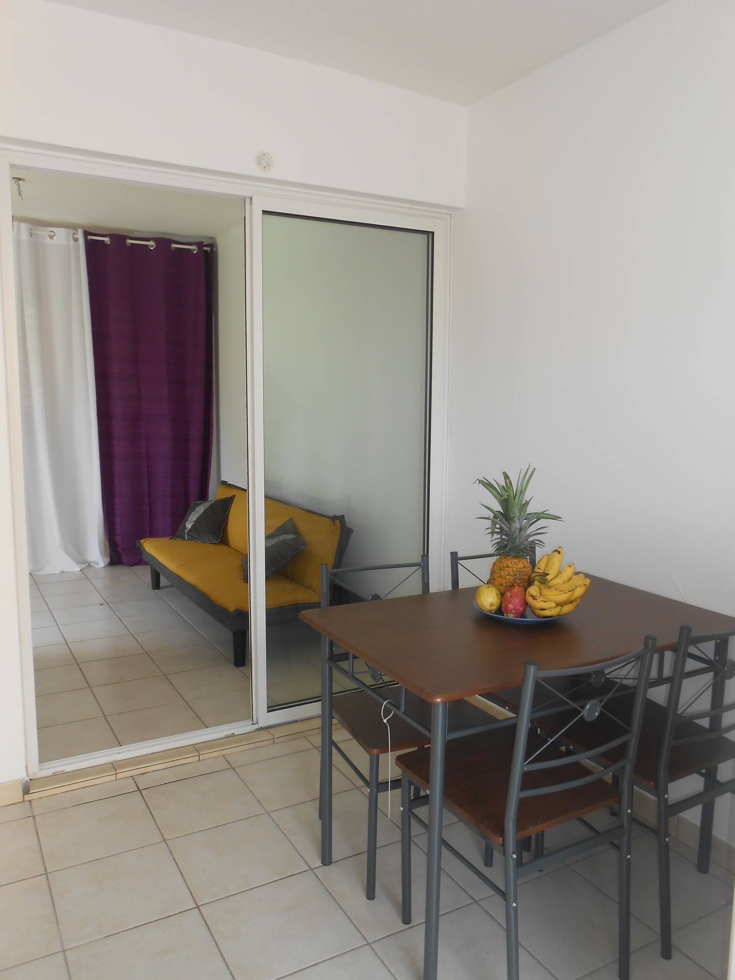 coin chambre, salon et vrai cuisine indépendante, et une terrasse extérieure privée .