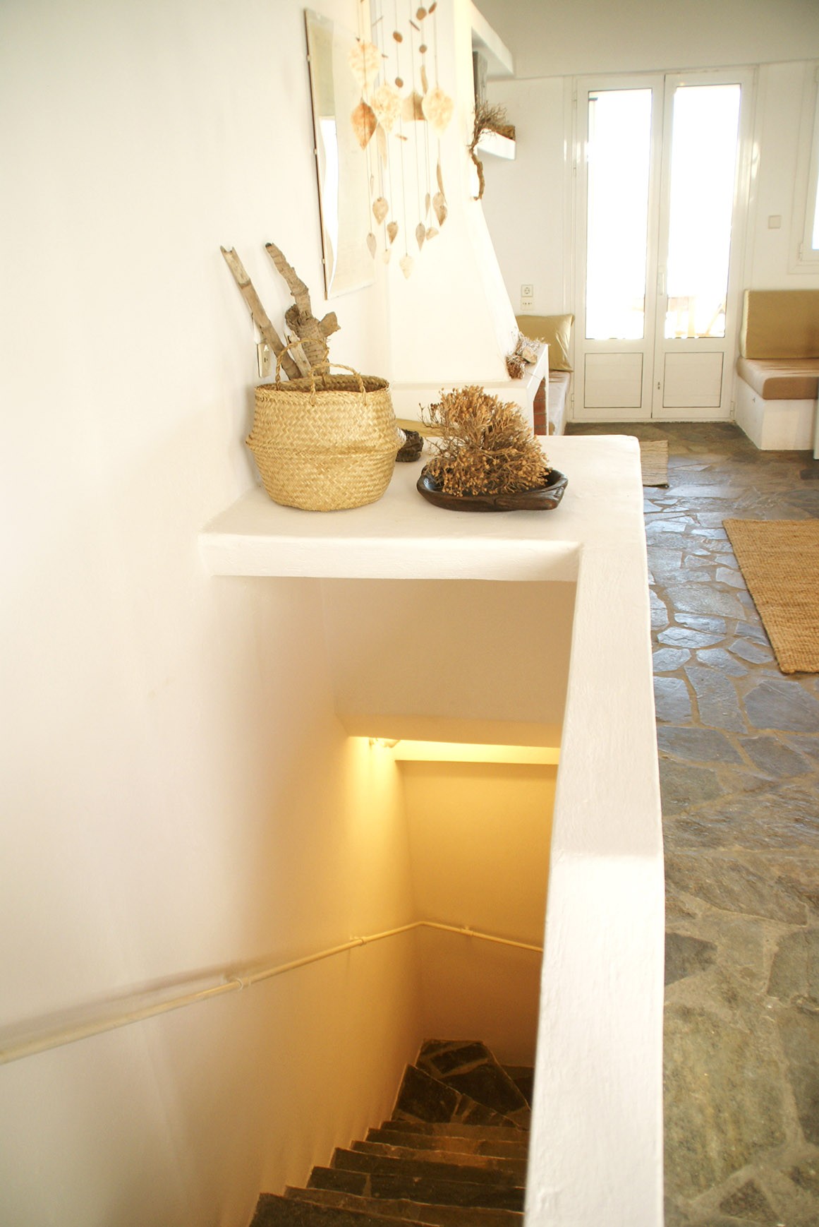 The house is located within a residential house complex, and very close to the movida of the island. Nevertheless it is quite as it is located on the hill above, and it has 2 wonderful terraces in front and behind the house, which give the house a sense of independence and offer a wonderful view.