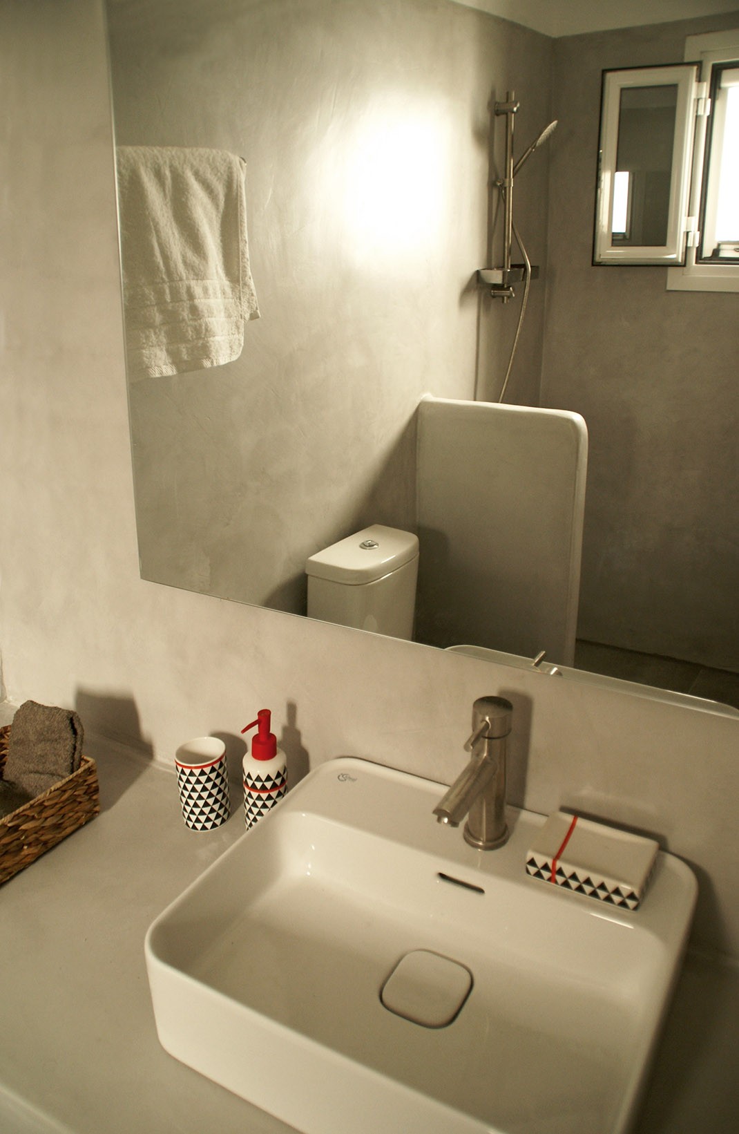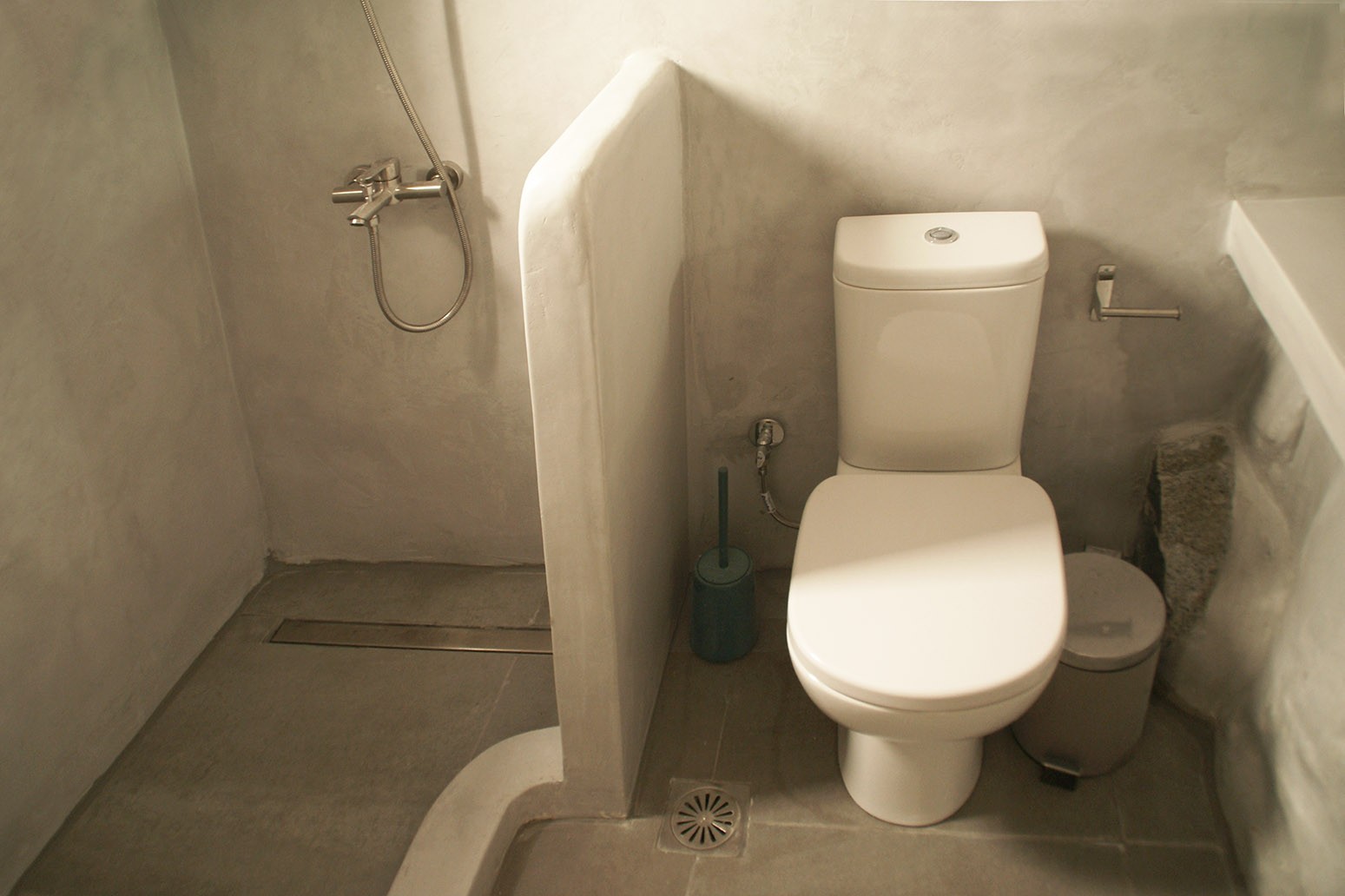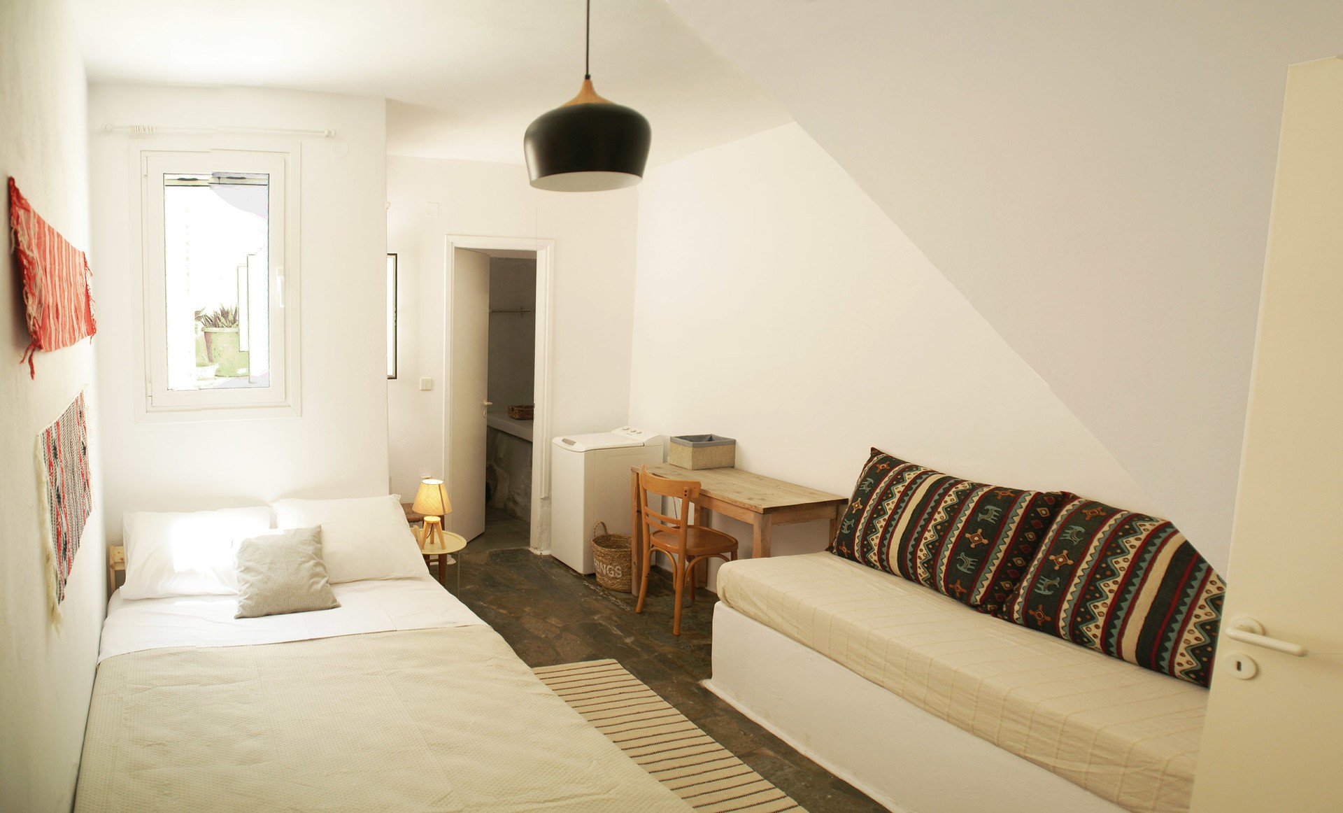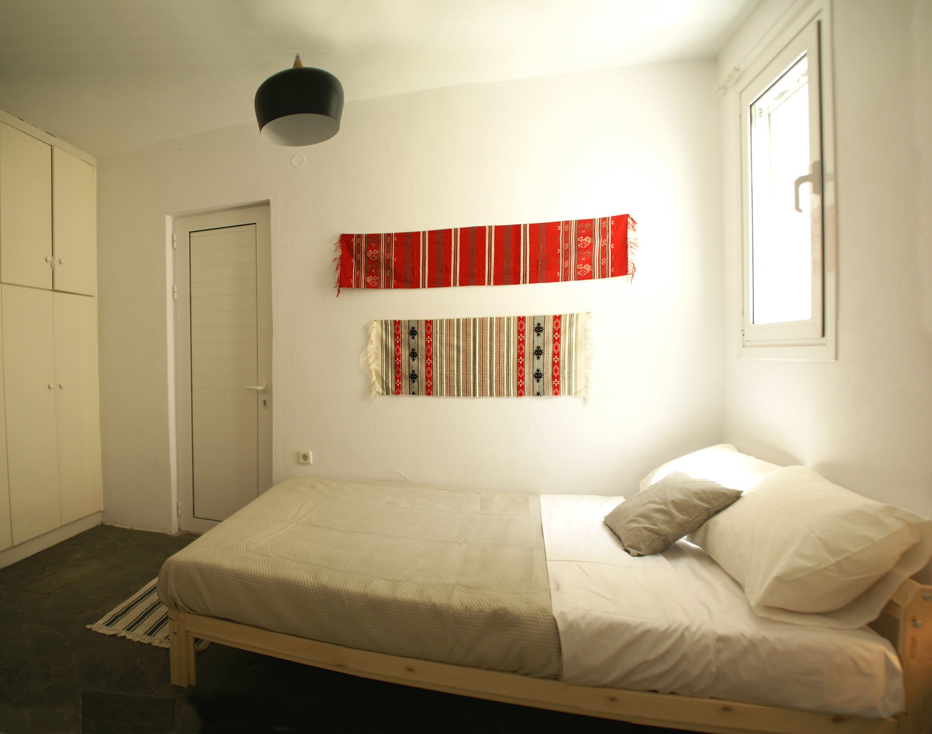 The downstairs room, although being semi-basement, has 2 windows and its own independent entrance from the outside, as well as a direct connection to the rest of the house with internal stairs. It has a large closet, a double bed, a single bed, a washing machine and the second bathroom of the house (also with a window).