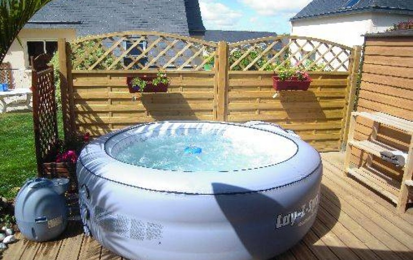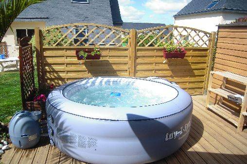 exposé sud avec salon de jardin. 1 jacuzzi gonflable 4 personnes (de juin à septembre uniquement) avec son coin terrasse. parking privatif. wifi. toutes commodités à 900 m (boulangerie, supérette, centre médical, pharmacie, bar tabac presse,coiffeur, fleuriste, cave à vins).