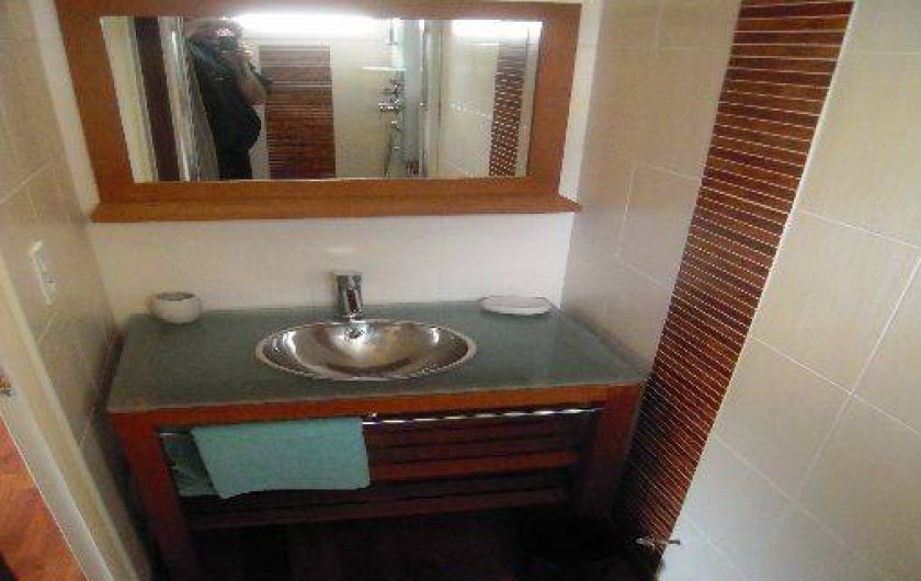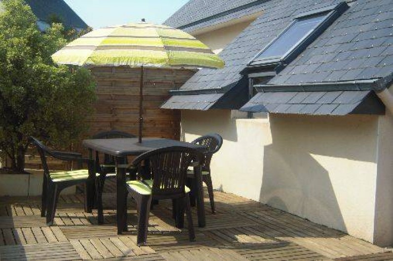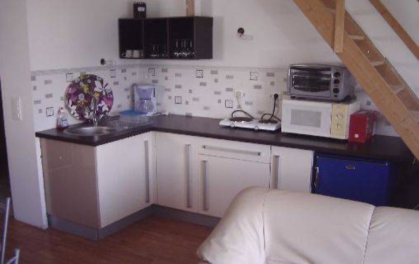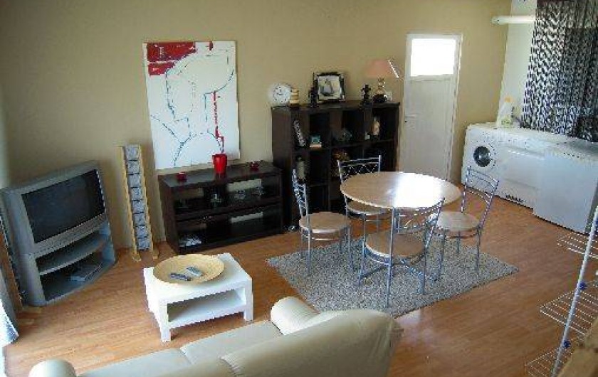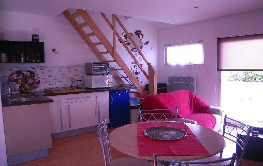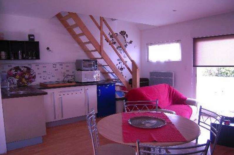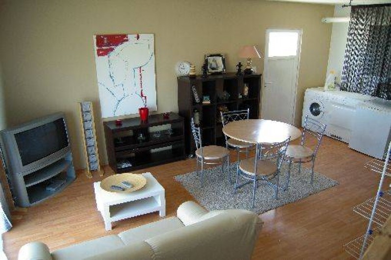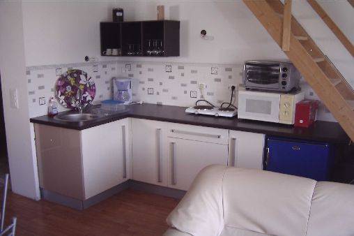 appartement en location toute l'année , le t1 bis de 35 m2 est en rez de jardin. notre appartement est indépendant et mitoyen à notre logement. il est composé d'une piéce principale avec un salon séjour + kichnette + coin repas (vaisselle, plaque gaz, mini four, micro onde, réfrigérateur, congélateur, machine à laver, sèche linge, télévision). a coté (au rez de chaussée) vous avez une chambre séparée avec salle d'eau, et un wc séparé. vous avez également une terrasse bois