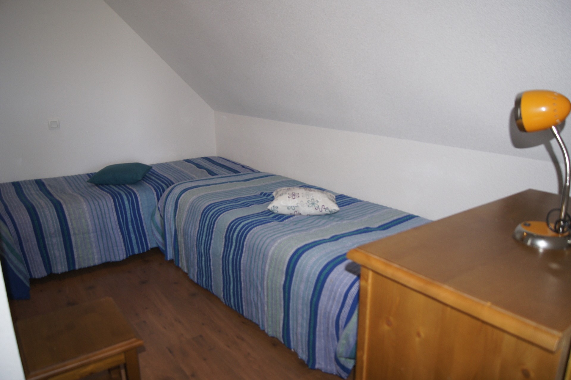 A l'étage, une chambre, un coin montagne et un couloir desservant un toilette et une salle de douche.