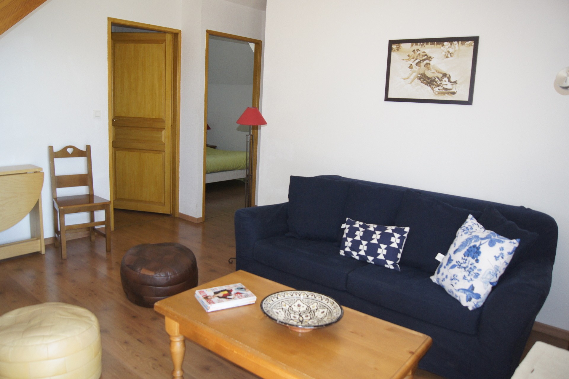 Une pièce de vie disposant d'un coin cuisine entièrement équipé, d’un coin repas avec table et chaises, d’un canapé convertible (140x190), d’une télévision, d’un accès Internet Wifi.