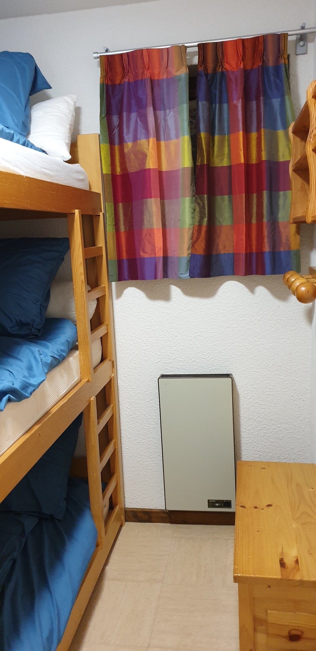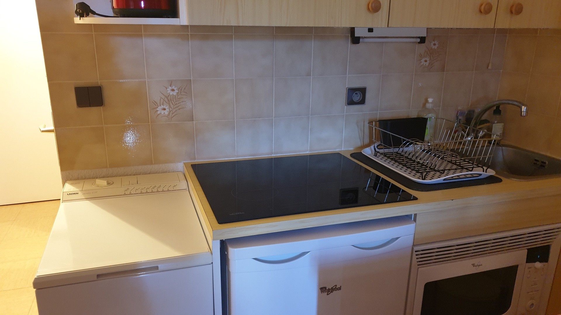 Proche des pistes,studio meublé de 21.54m2 comprenant un séjour cuisine, une chambre, une salle de bains et un wc, balcon exposition sud, cave et casier à skis. -coin cuisine avec évier, frigo, four, plaque de cuisson induction -séjour avec clic-clac 2 personnes -une chambre avec 3 lits superposés simples