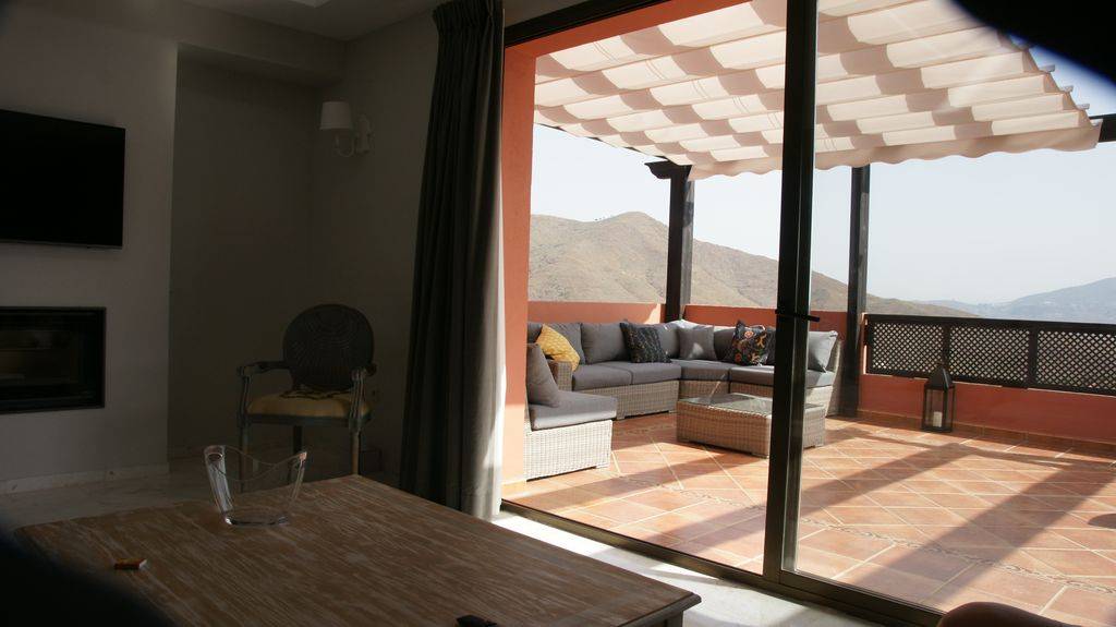 Le salon s'ouvre sur une trés vaste terrasse comprenant un salon et une salle à manger extérieurs. Vues exceptionnelles de la terrasse sur la montagne , la mer et la nature.