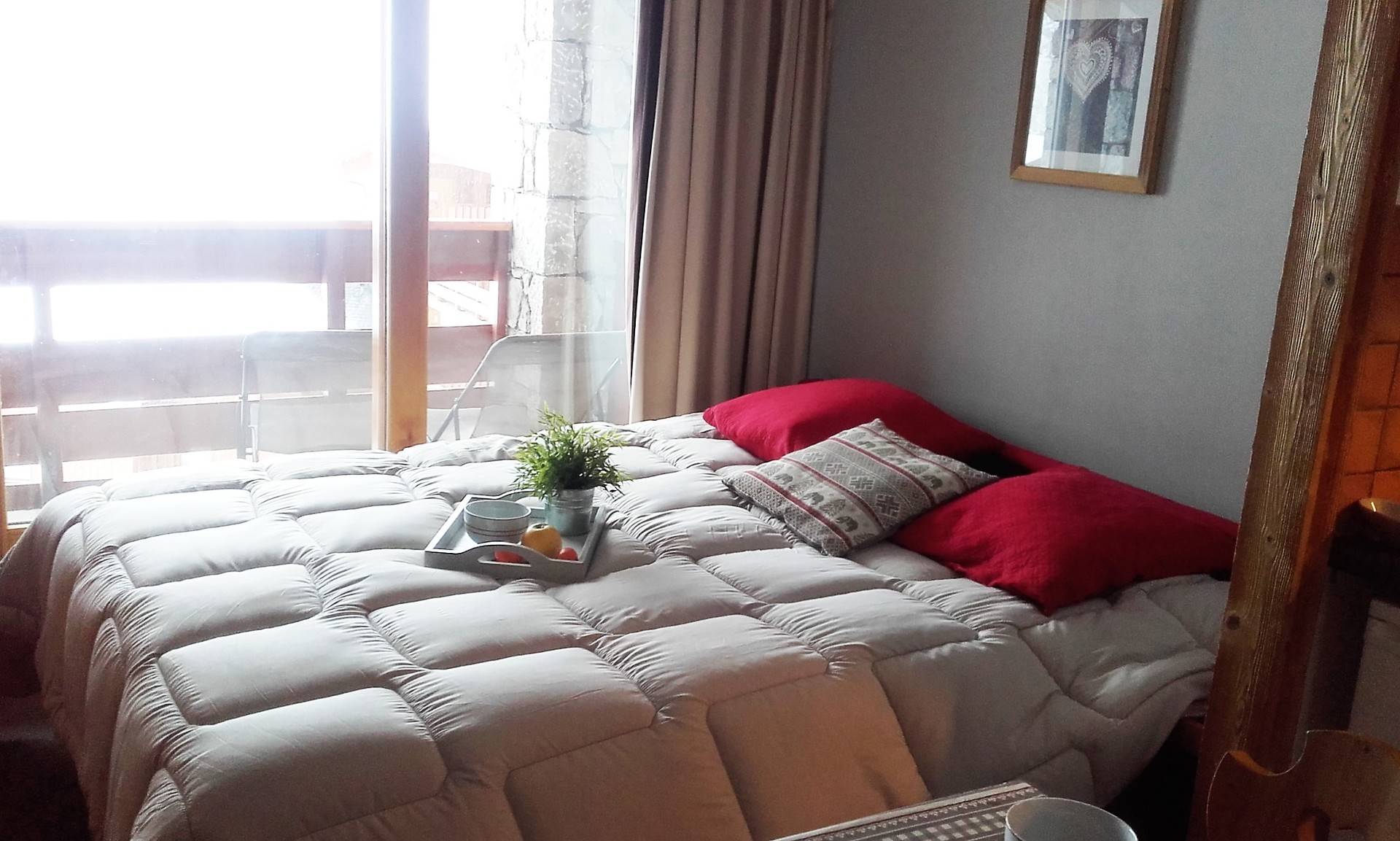 Méribel Mottaret à 1750 m d'altitude , au centre des trois vallées studio avec chambre cabine séparée du séjour au 7éme étage d’une résidence classée 3 étoiles avec vue superbe sur les pistes comprenant :