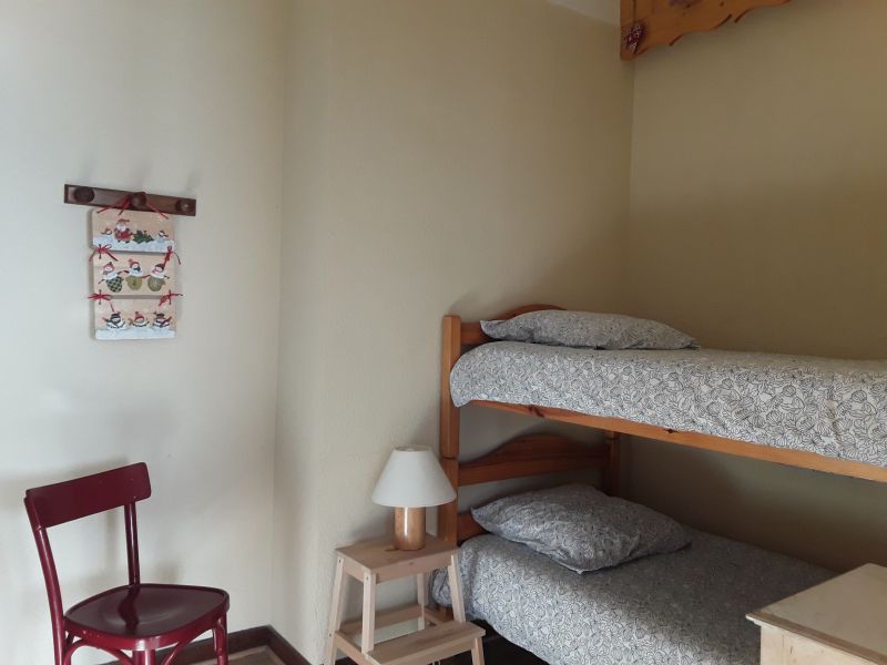 L'espace se répartit comme suit: entrée, cuisine équipée avec grande table, salon avec canapé lit et lit 1 personne, chambre avec lit double,grand coin montagne fermé avec 2 lits superposés, salle de bain avec douche a l'italienne, wc séparés
