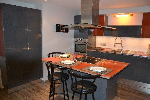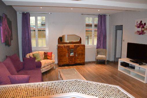 Appartement de 62 m2 entièrement refait en 2010 , climatisation réversible, un séjour avec cuisine ouverte (ilot central) et bar , canapé convertible 2 places ,TV ,une chambre avec TV et lit 2 places , une salle de bain avec jaccuzi et dressing , un WC séparé .Trés lumineux ( 4eme étage sans ascenseur)5 larges fenêtres laissant entrer la lumière.