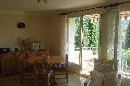 Location d'un appartement à Nyons en Drôme provencale au 2e étage avec ascenceur dans une petite résidence de 3 étages située au calme dans une rue sans issue . Cette résidence ne comporte que 11 appartements et est située à 250 mètres du centre de Nyons. Séjour plein Sud