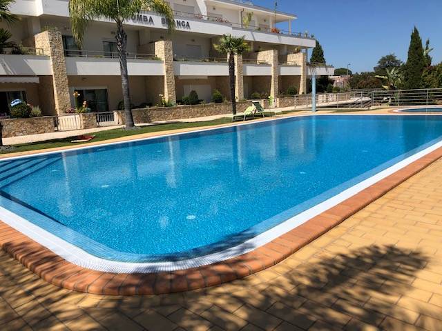Appartement dans une résidence fermée, à 400m à pied de la plage de Olhos de Agua. Parking voiture au sous-sol. Il se situe au 1er étage pour une capacité de 4/5 personnes. Il est composé d'un salon- salle à manger, d'une chambre, d'une salle de bains avec we, d'une cuisine équipée. La terrasse possède un barbecue, une vue directe sur la piscine et un accès directe. La piscine est grande pour les adultes, possède un bassin pour les petits enfants et entourée de verdure. A quelques mètres, vous trouverez pharmacie, banque, restaurants et supermarchés.