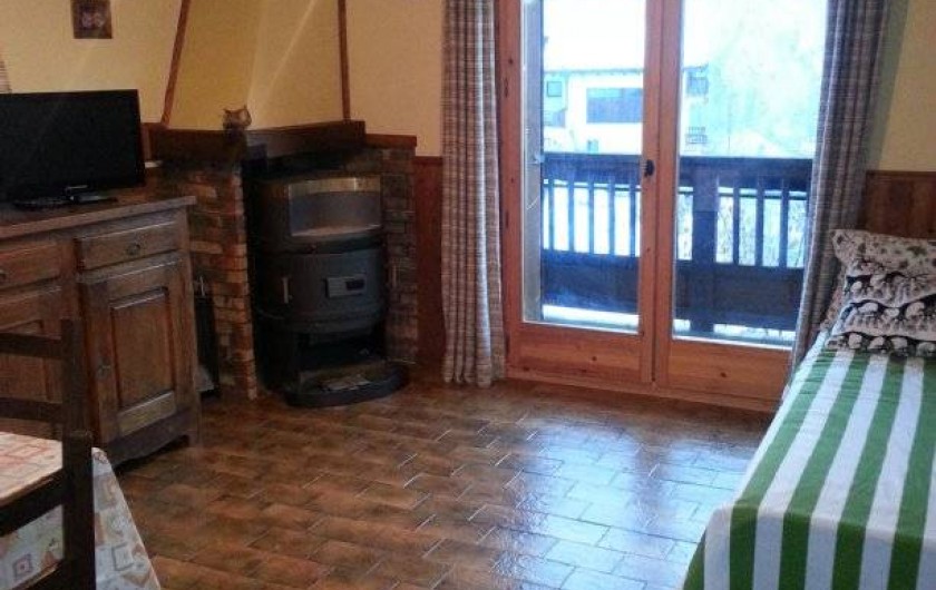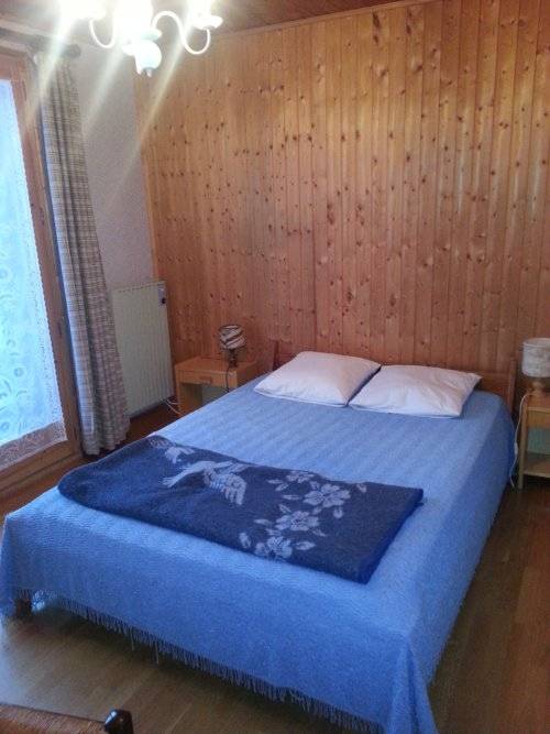 Appartement situé à l'étage du chalet ( niveau de la route) indépendant de l'habitat des proprietaires (situé au dessous) Environ 60 m2 Cuisine équipée ( materiel de base plus lave-vaisselle ,bouilloire, cafetière électrique, four micro-ondes) Une chambre avec lit pour deux et une petite chambre avec lit superposés plus si necessaire un couchage dans le séjour. Une salle d'eau avec douche et lave-linge . WC indépendants. Une petite terrasse avec table et sièges (équipement estival)