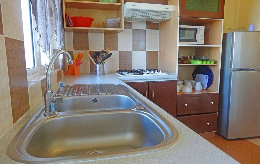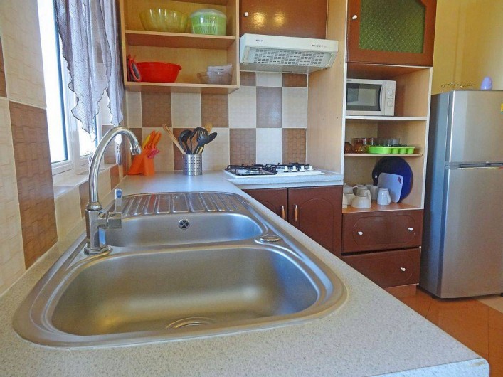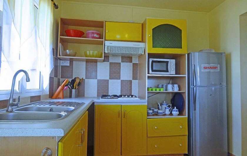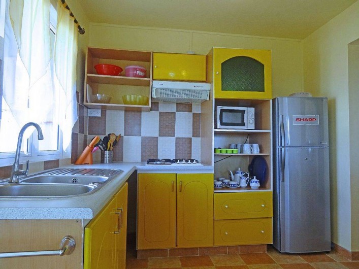 Une cuisine toute équipée (gazinière et plaques de cuisson, four micro-ondes, réfrigérateur, congélateur, couverts et vaisselles, etc…) n’attend plus que vous pour préparer vos petits plats habituels et découvrir bien sûr les saveurs locales…